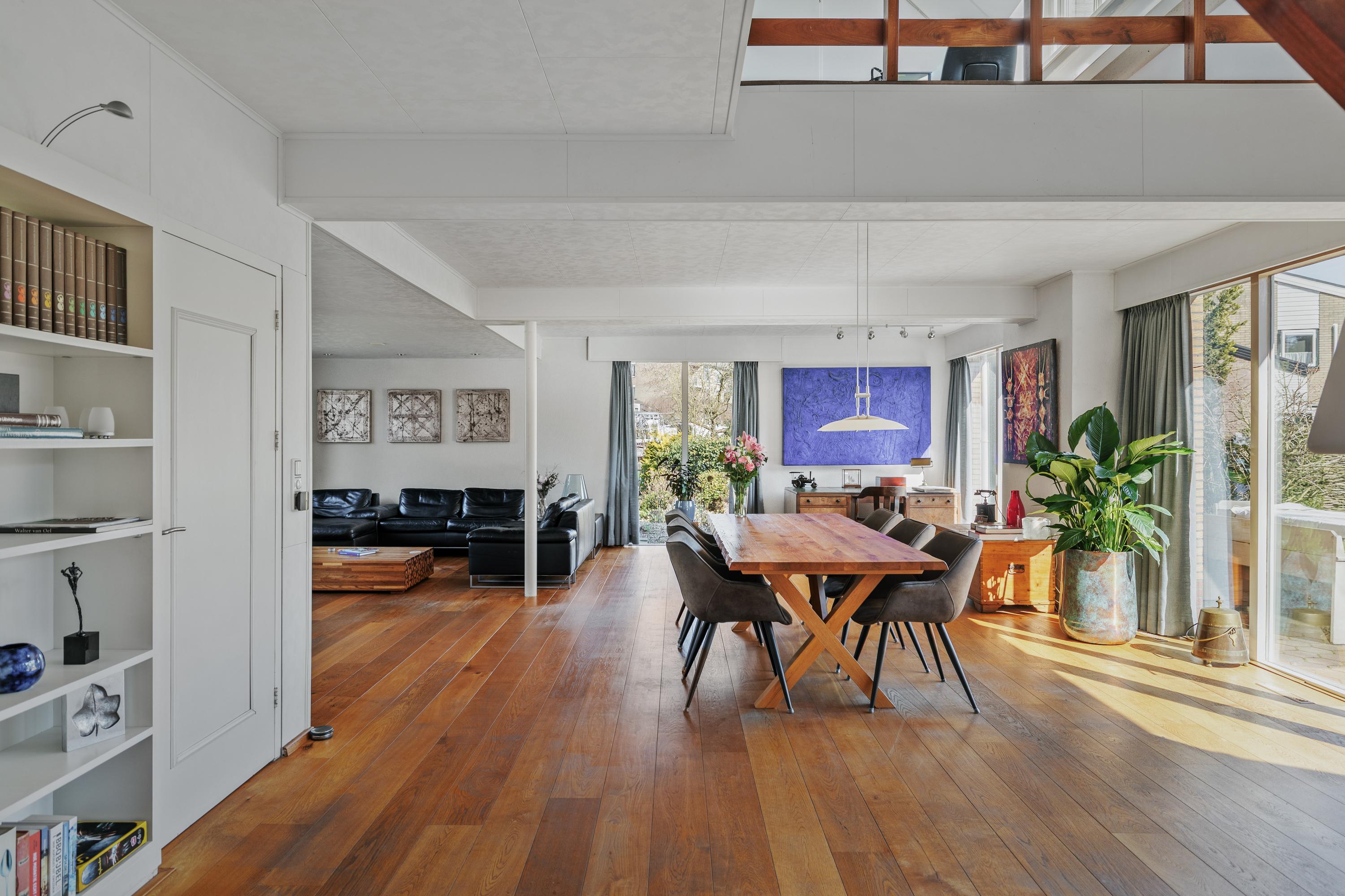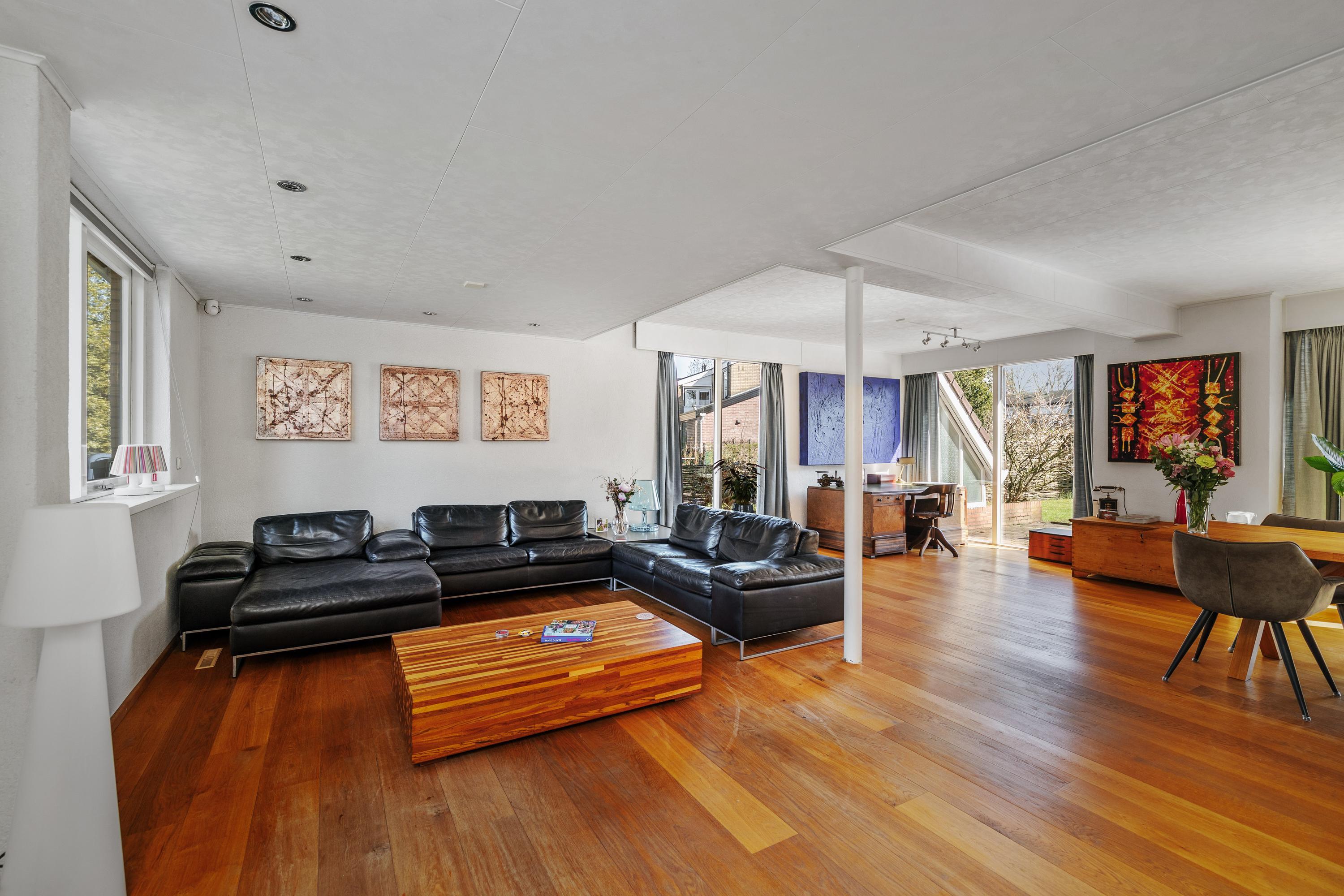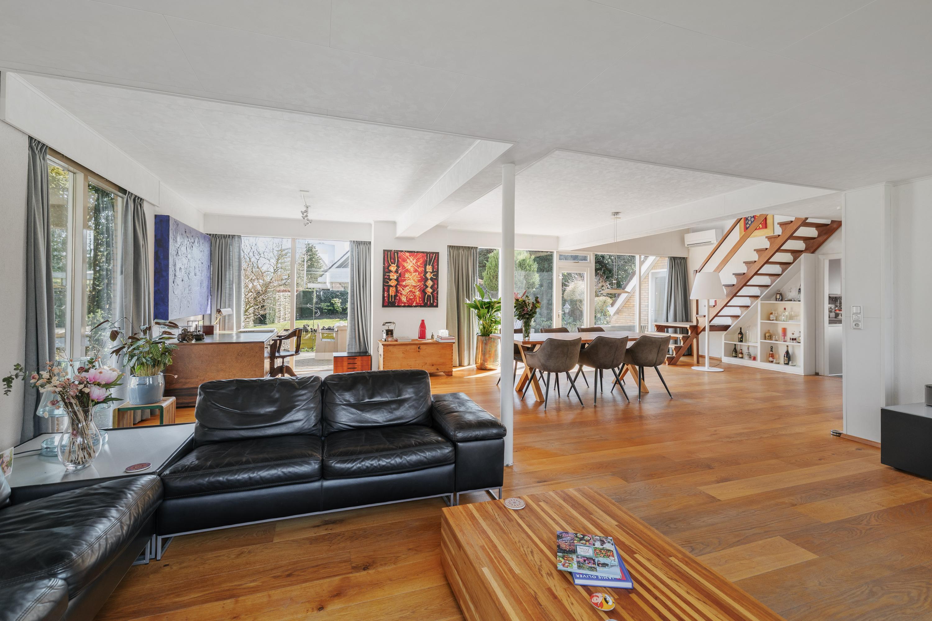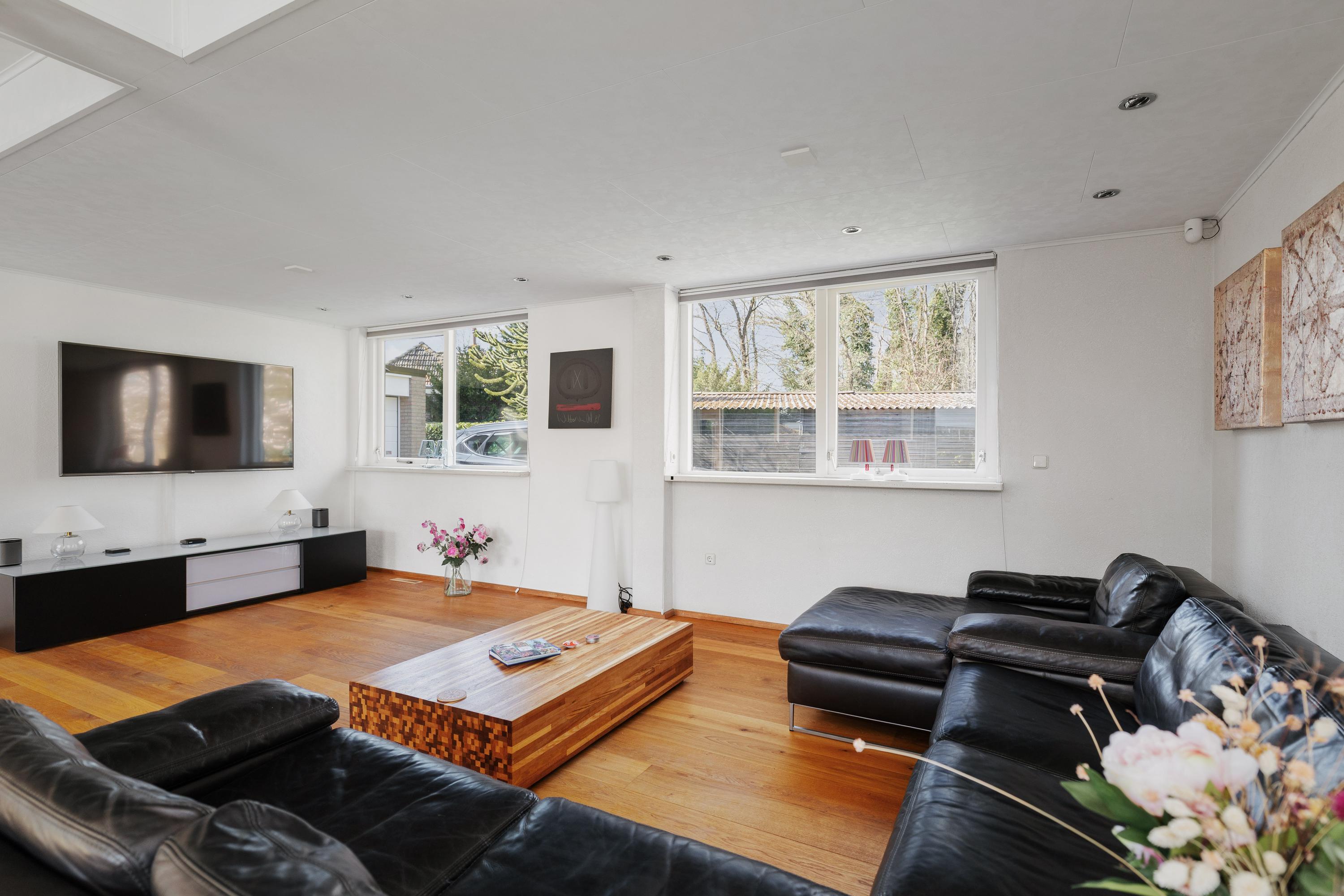 Bij binnenkomst valt direct de royale opzet van de woning op. De ruime woonkamer vormt het hart van het huis en biedt een prettige lichtinval en een fijne verbinding met de tuin. De indeling maakt het eenvoudig om verschillende woonfuncties te creëren: een comfortabele zithoek, een ruime eethoek en eventueel een werkplek.