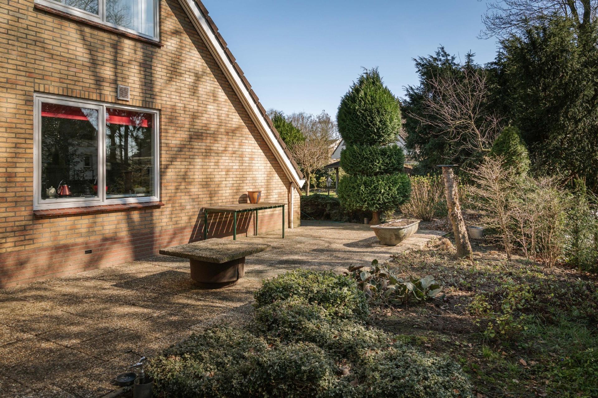 -Ruime tuin met veel privacy.
