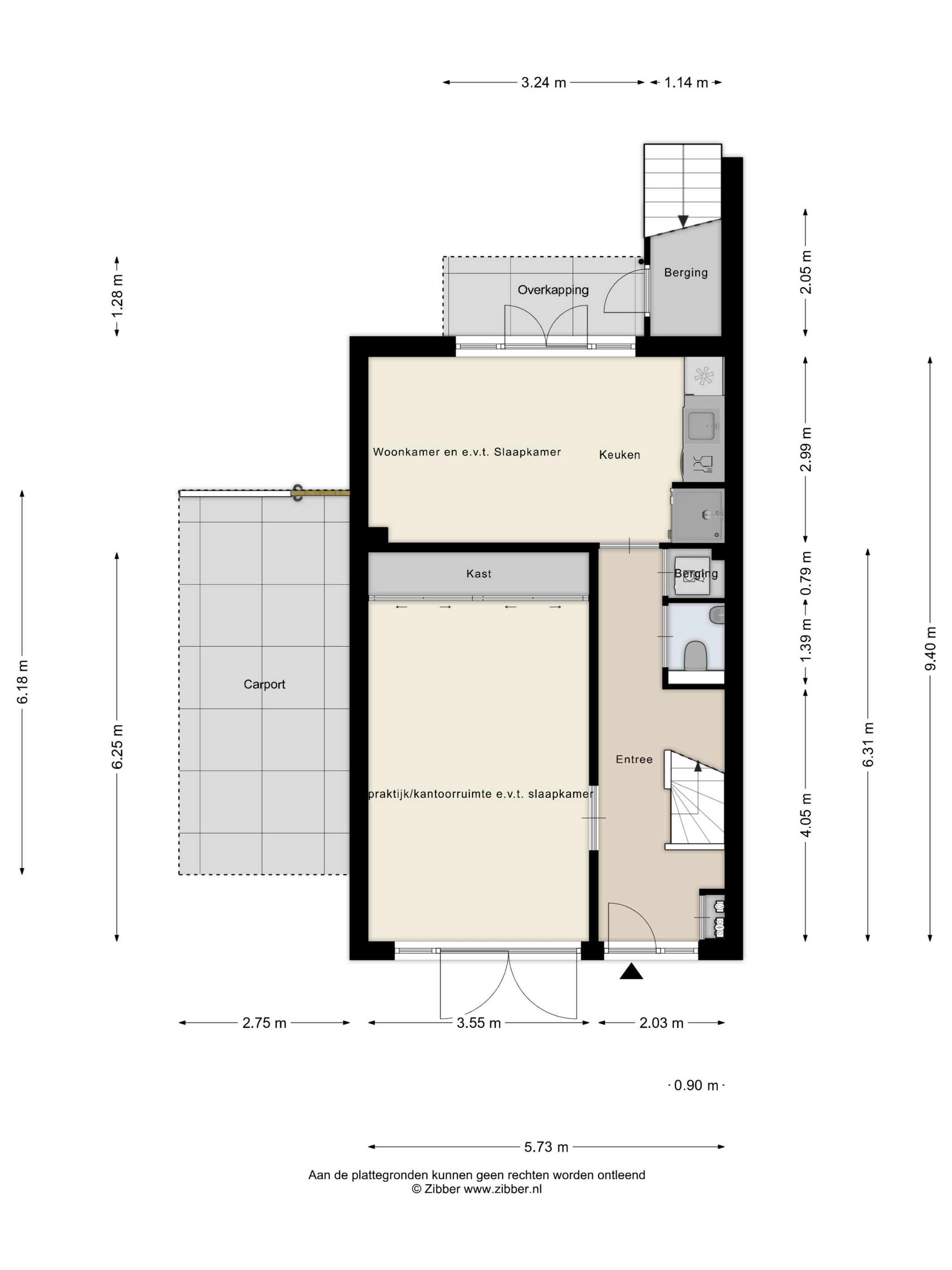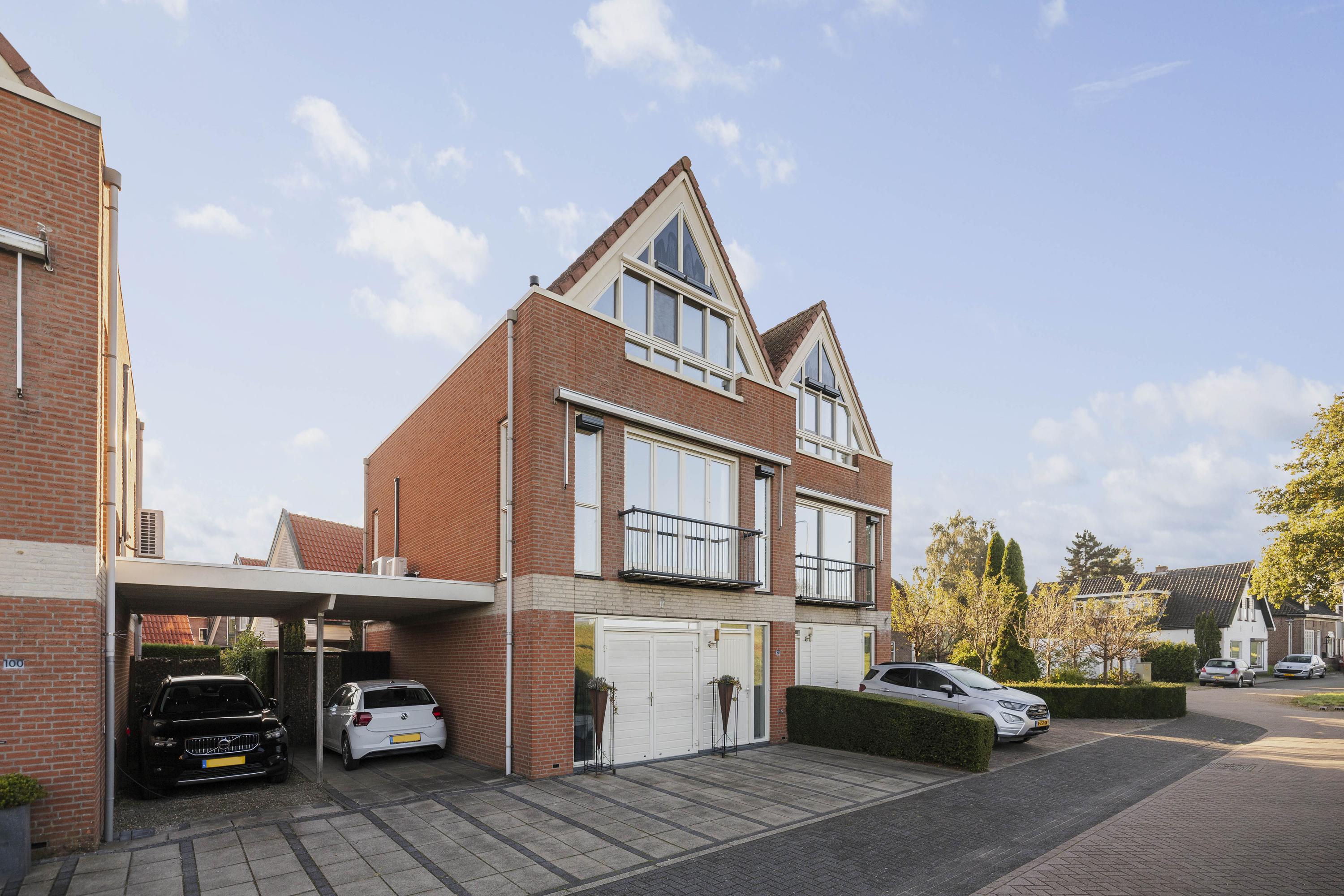 Je parkeert comfortabel op eigen terrein onder de hoge carport.