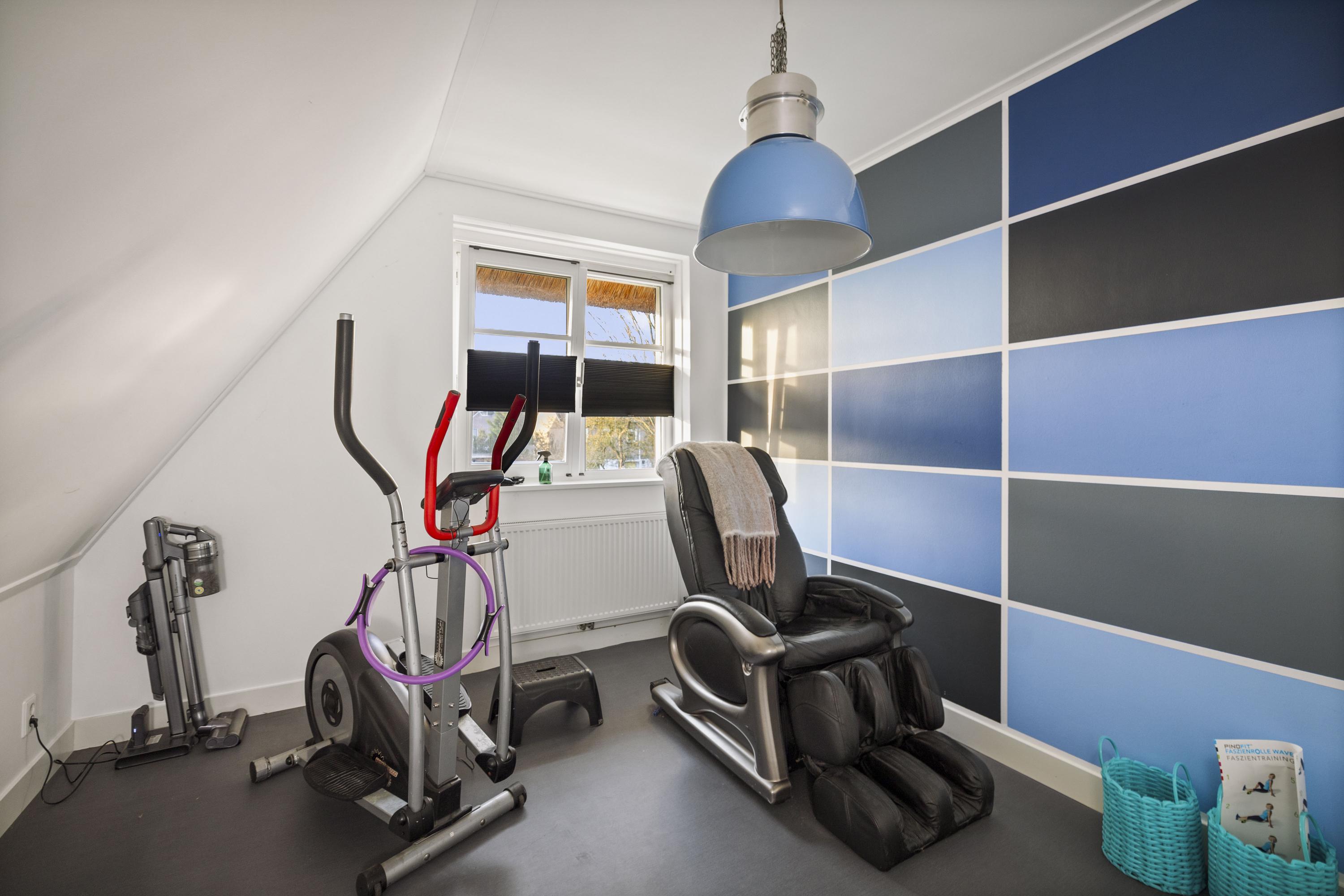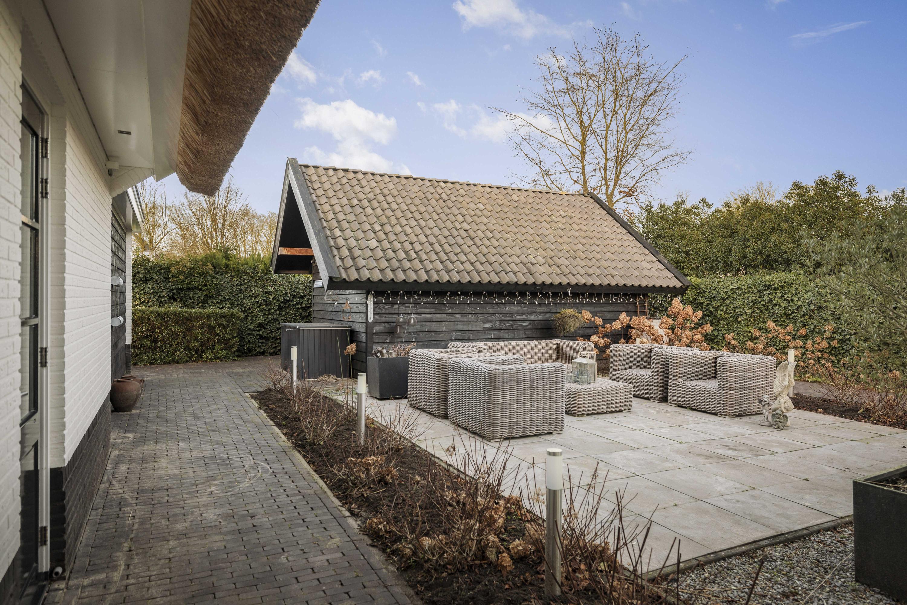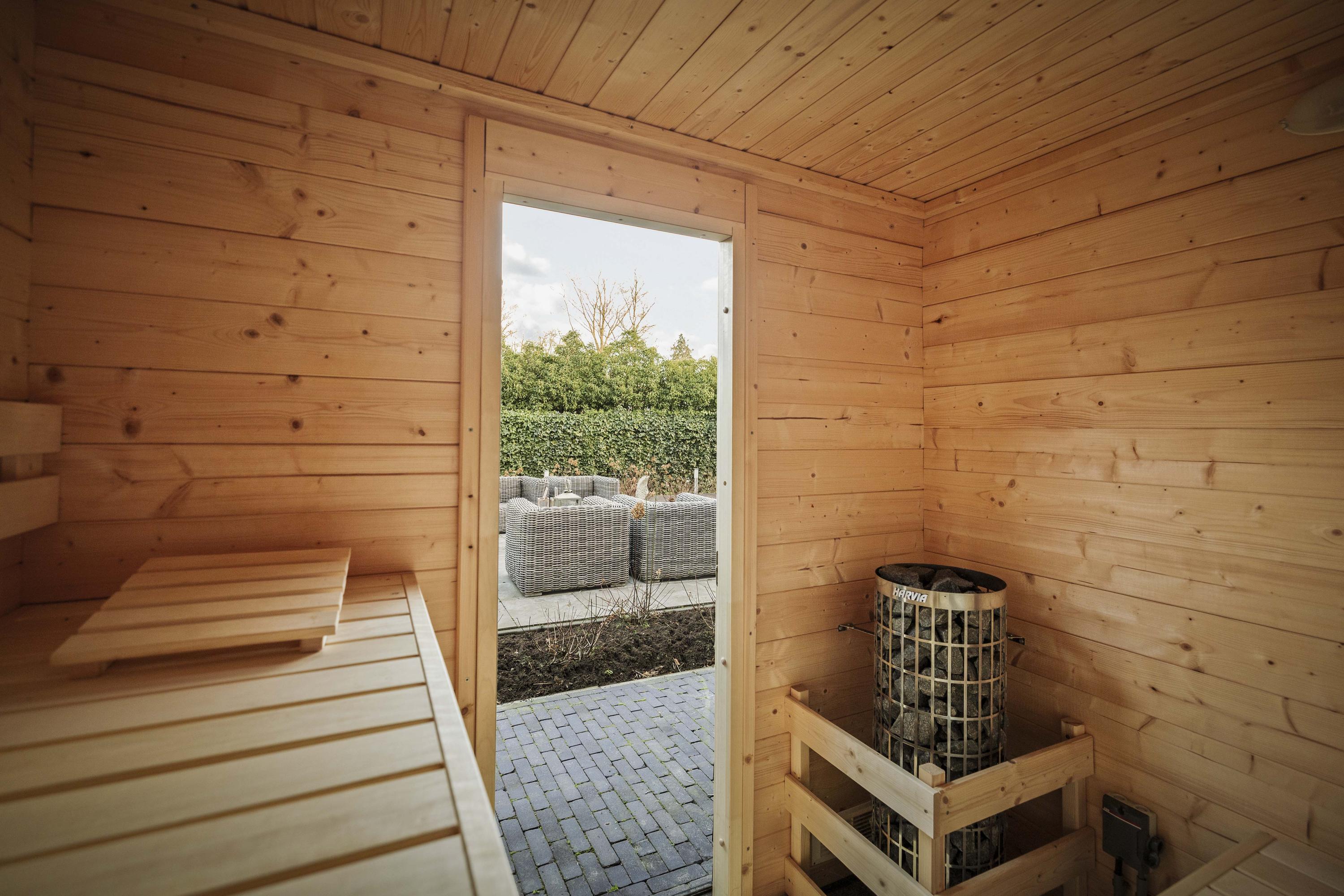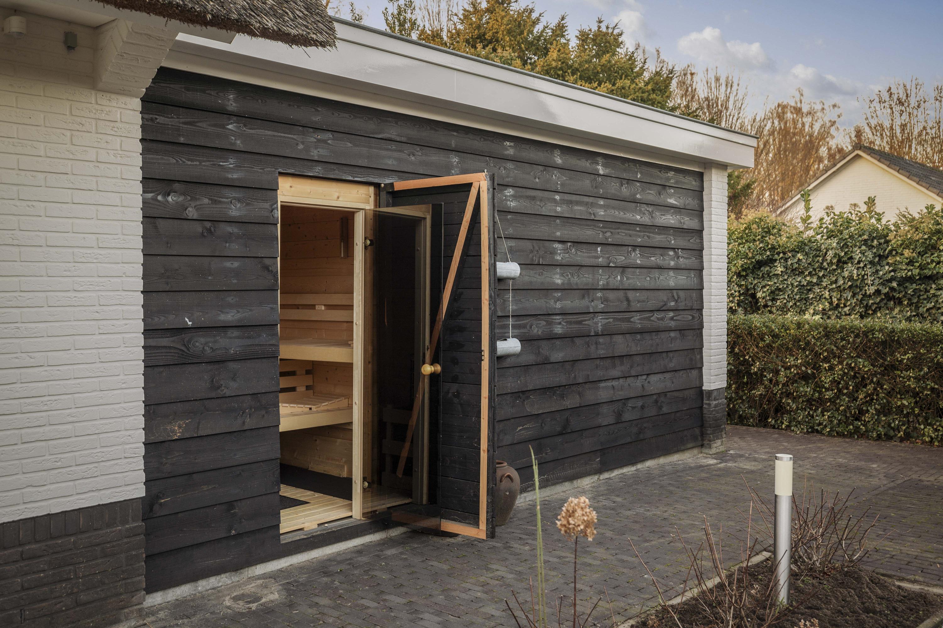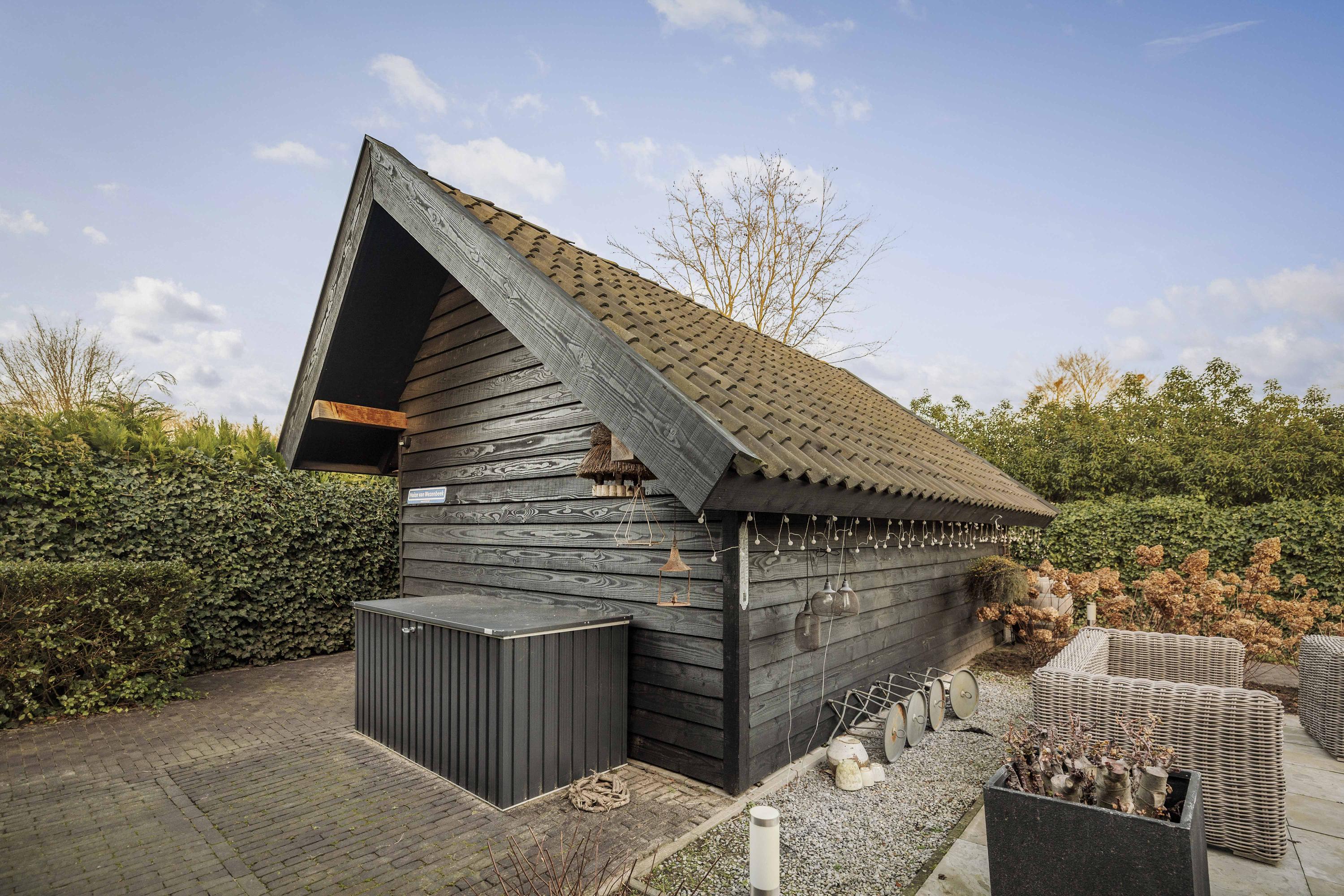 De grote houten schuur is in stijl gebouwd en biedt volop ruimte voor fietsen en tuingereedschap. Tevens is hier een ruime bergzolder aanwezig. Onder de carport is discreet een Finse sauna gerealiseerd, waar je in alle rust kunt ontspannen.