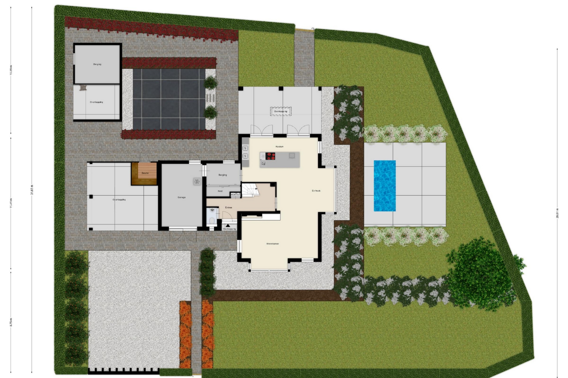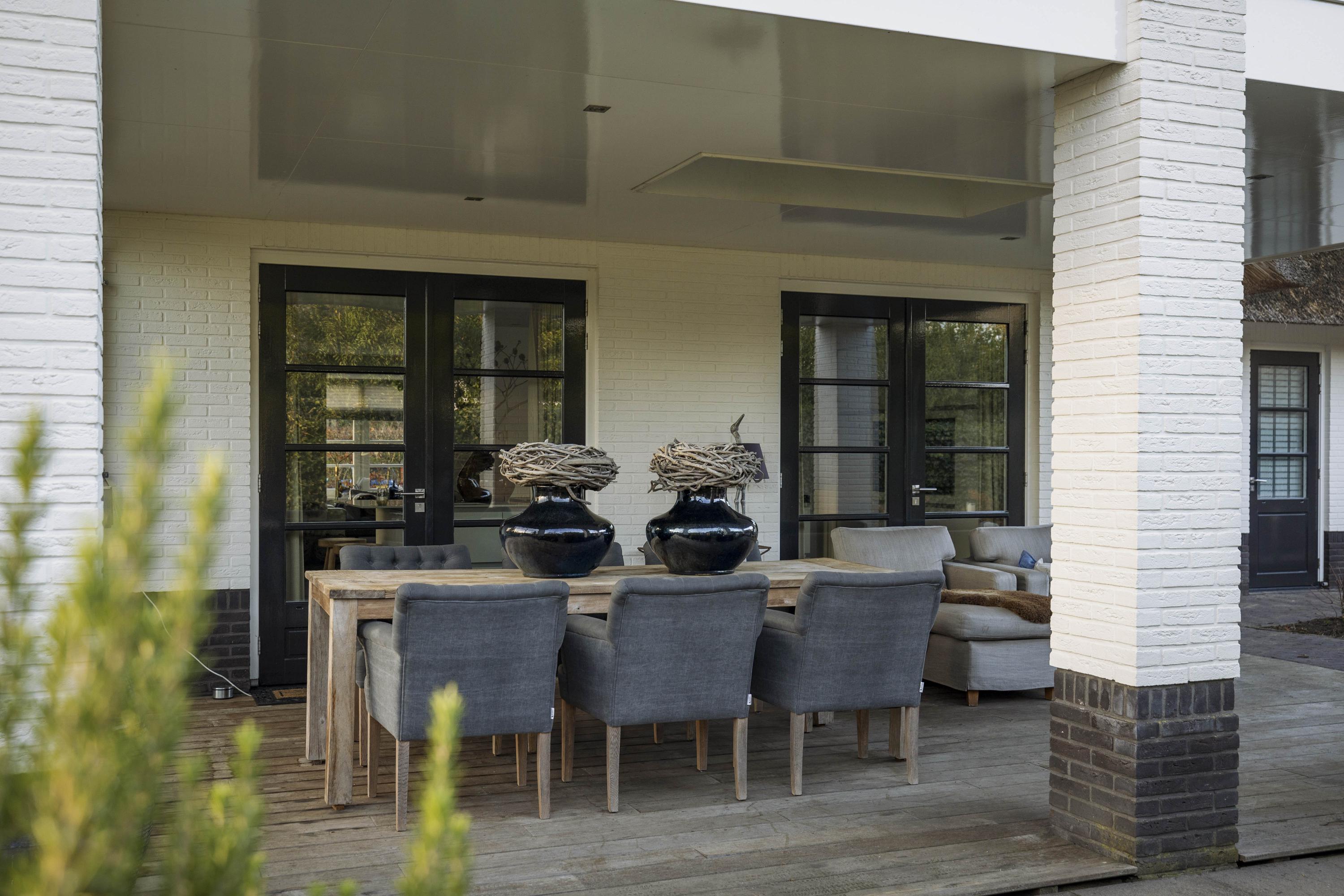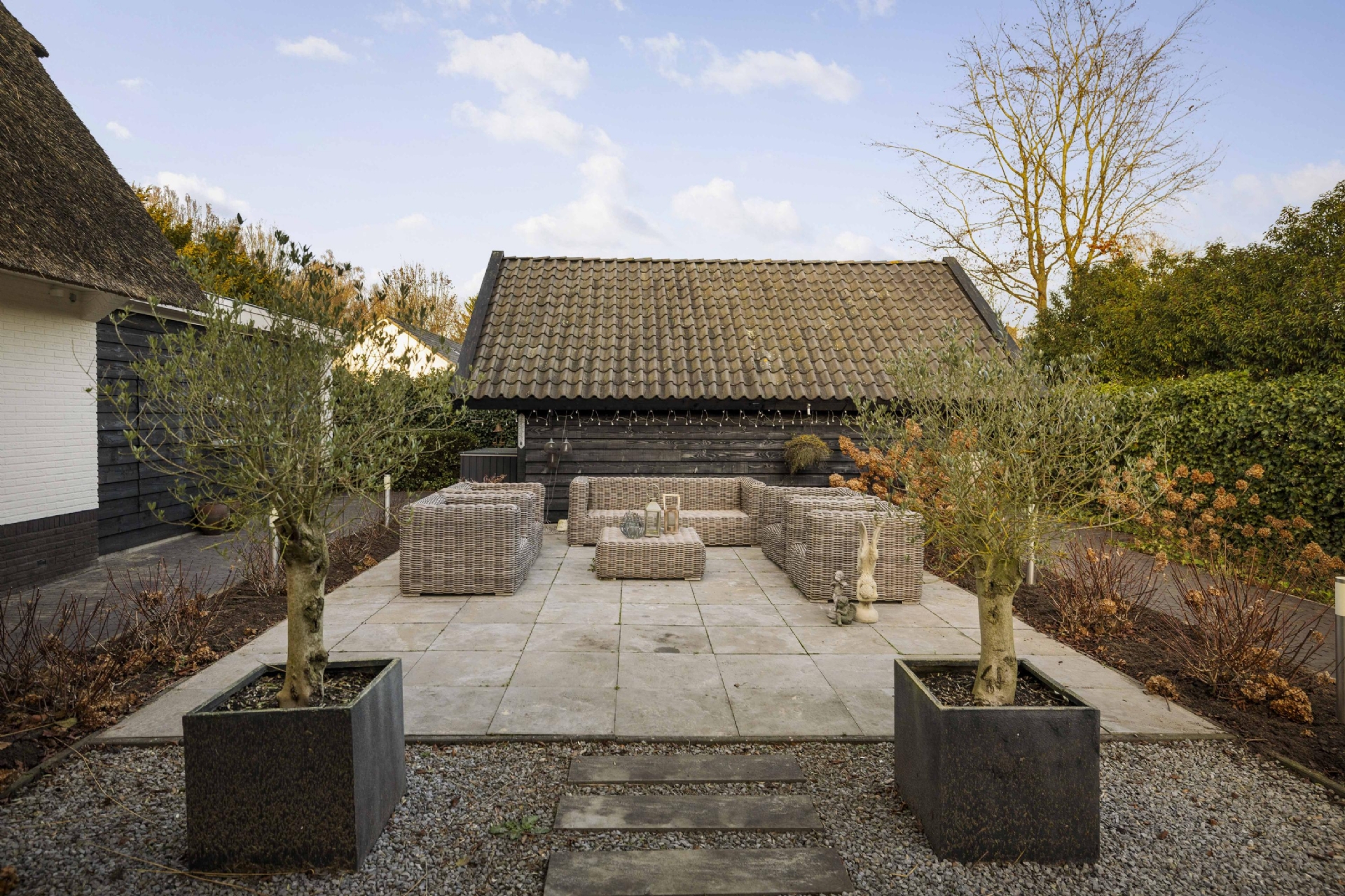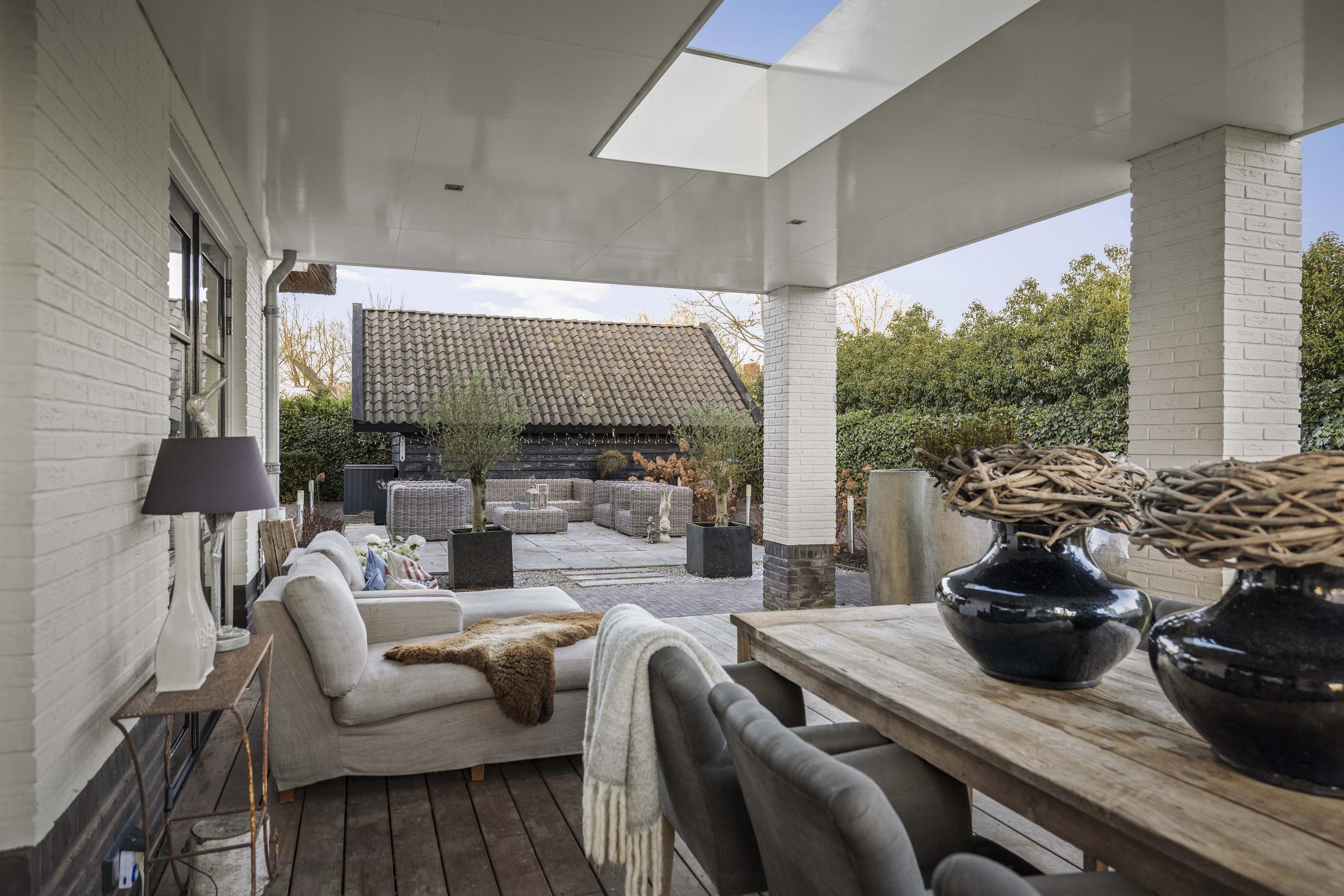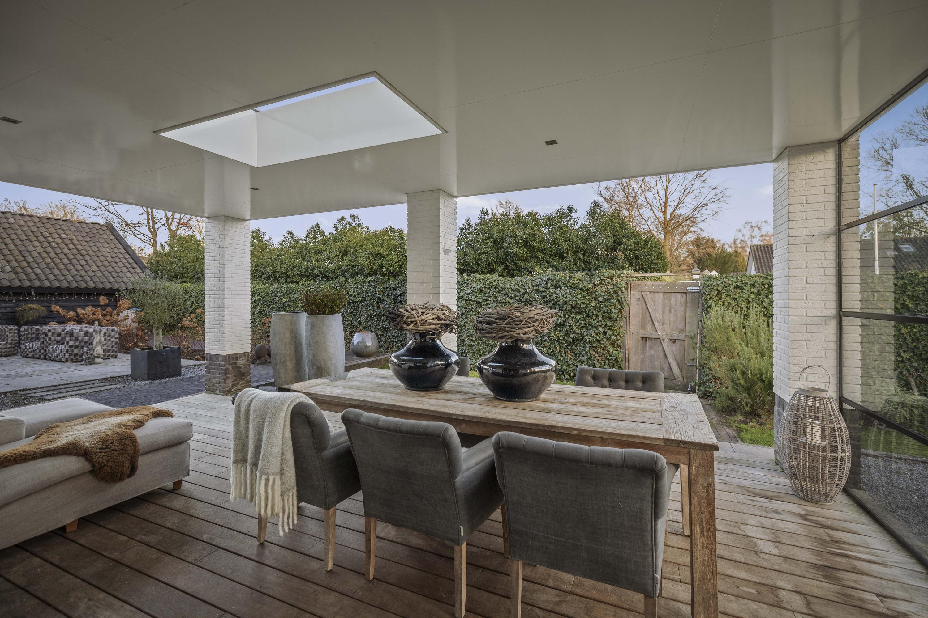 De onder architectuur aangelegde, onderhoudsvriendelijke tuin beschikt over meerdere terrassen, een beregeningsinstallatie en sfeervolle verlichting. Onder de royale veranda is het heerlijk genieten van het buitenleven dankzij het windscherm kun je hier al vroeg in het seizoen comfortabel buiten zitten. Onder de veranda is een fundering aanwezig zodat je deze eenvoudig om kunt bouwen tot b.v. een tuinkamer.