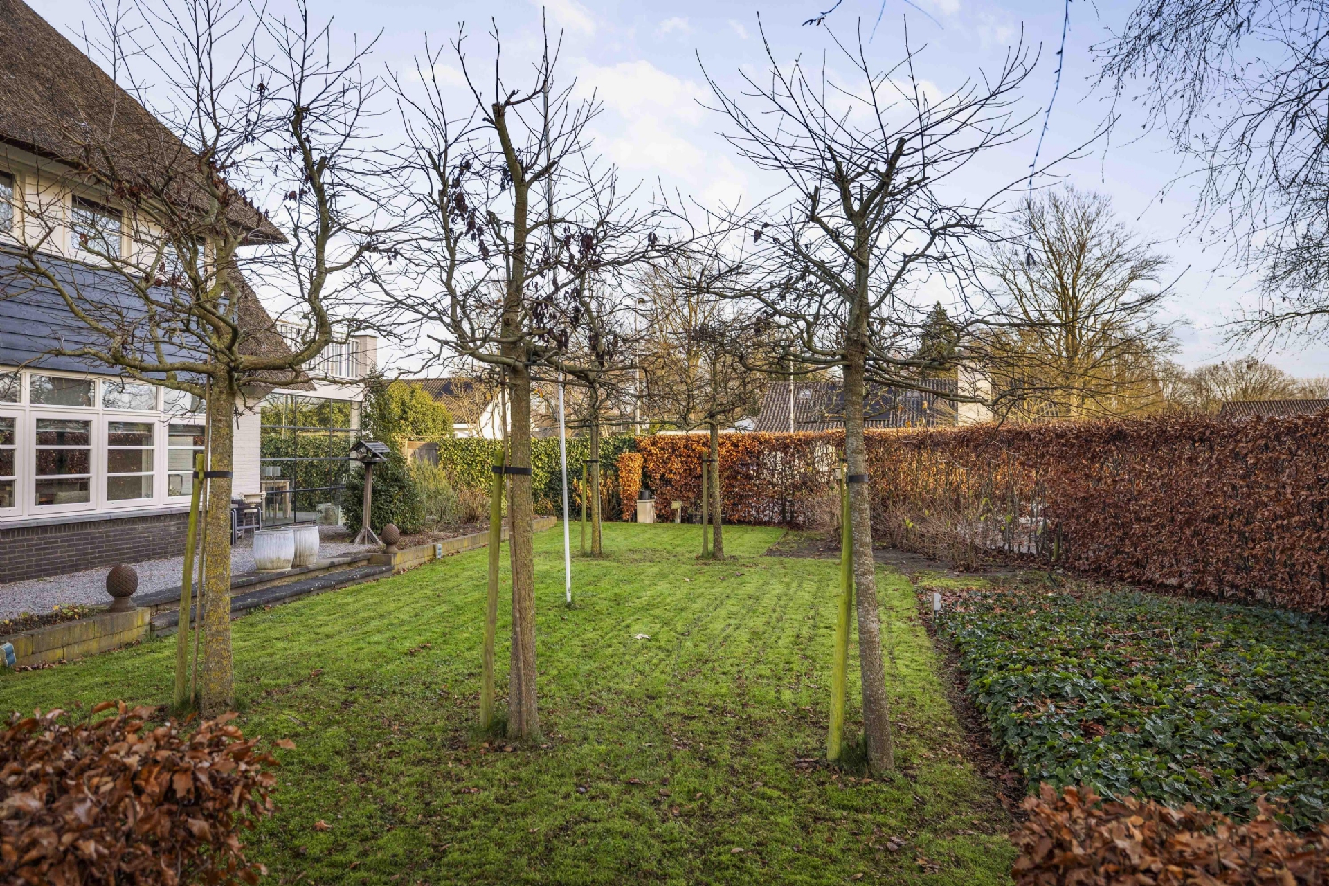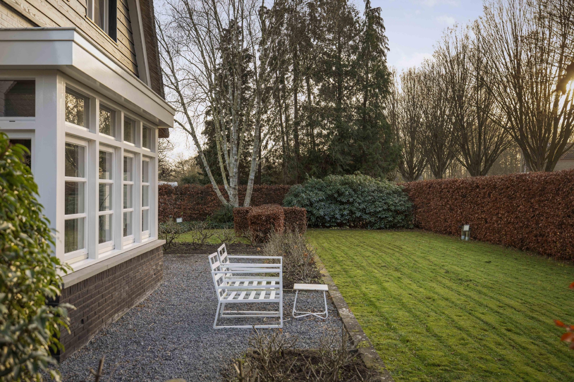 Het royale perceel van 1.183 m² biedt veel privacy en is fraai omsloten door volwassen bomen en hagen. Door de zonnige ligging op het zuiden kun je hier de hele dag genieten van de zon.