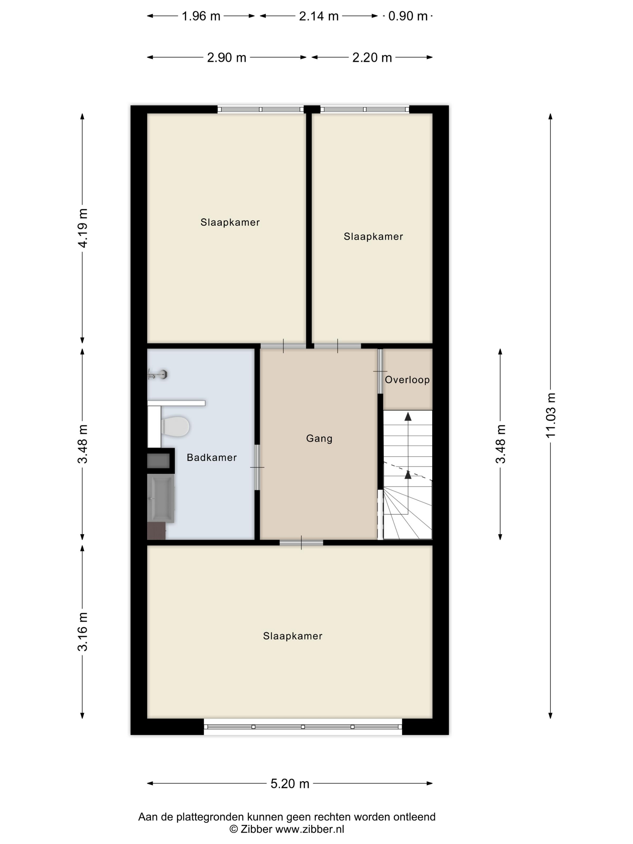3e Verdieping: overloop met bergruimte, cv-opstelling, wasmachine- en drogeraansluiting. De vierde slaapkamer op deze verdieping bevat een eigen wastafelmeubel.