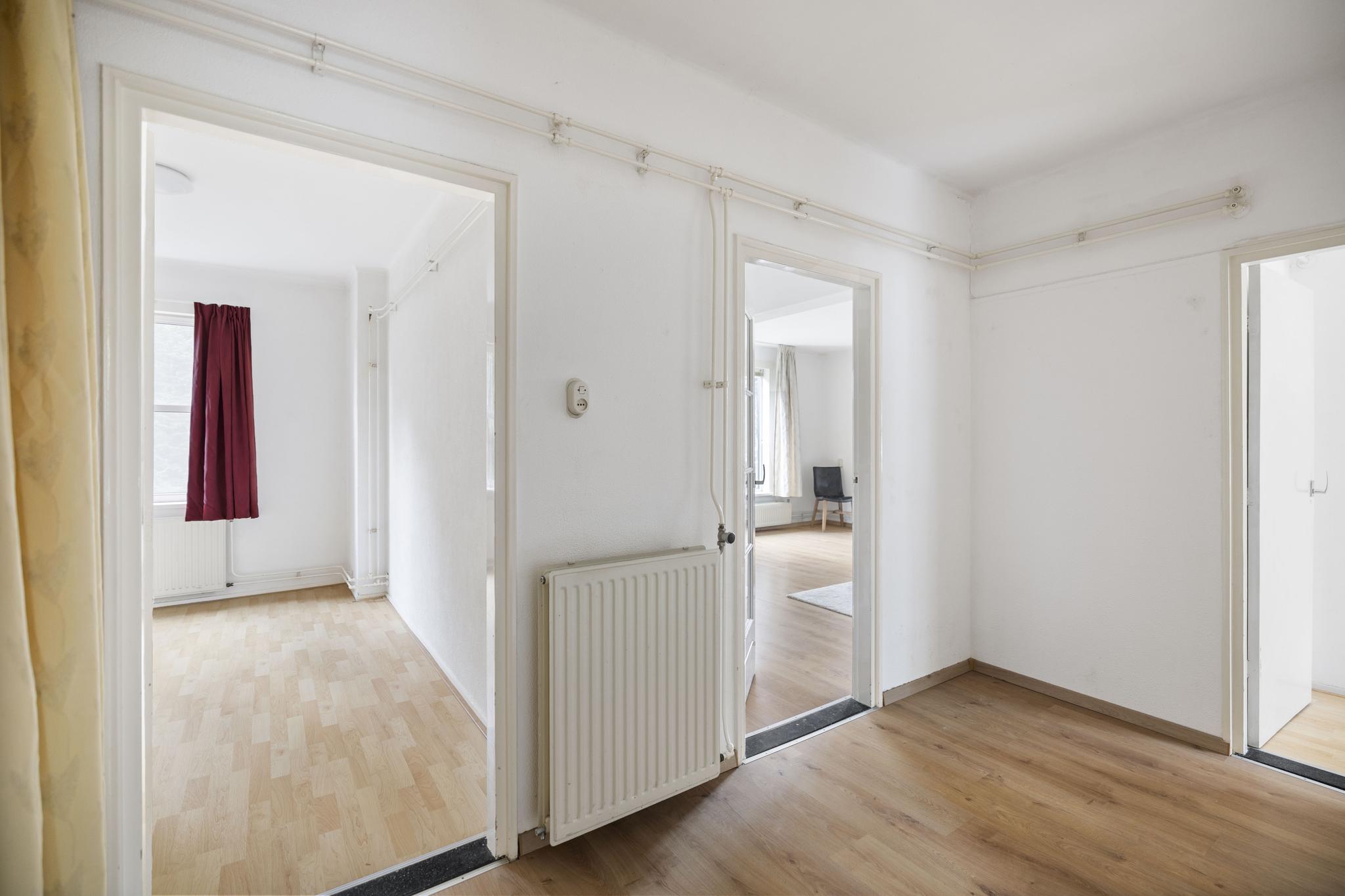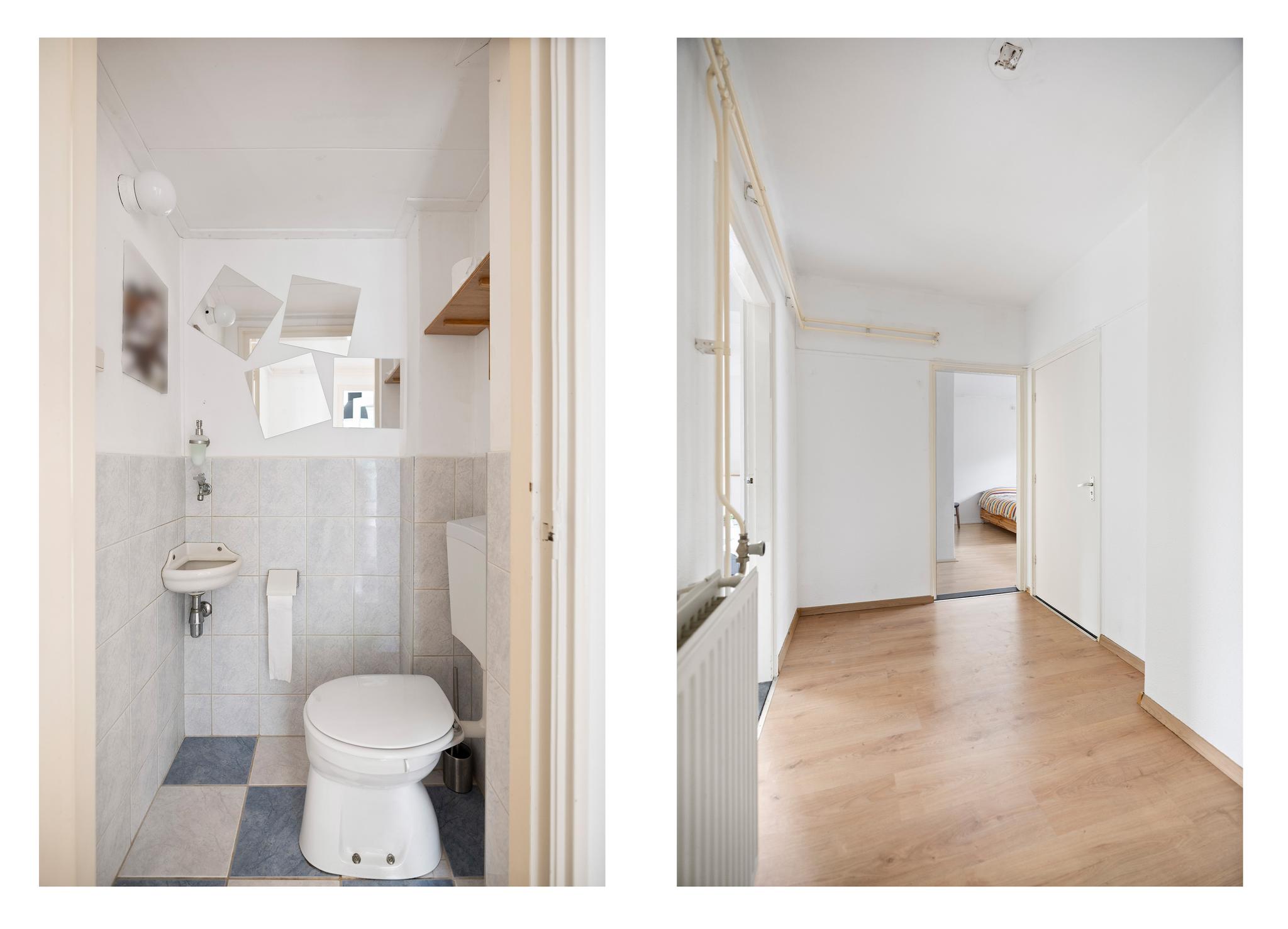 Ruime entree, toilet met fonteintje, ruime lichte woonkamer met toegang tot het balkon. Doordat dit een hoek-appartement betreft heb je hier een extra raam aan de zijkant va het appartement. Hierdoor is er extra veel lichtinval en een mooie ruimtelijke beleving. 2 Ruime slaapkamers met vaste kasten. Badkamer met douchecabine, wastafel en wasmachine aansluiting.