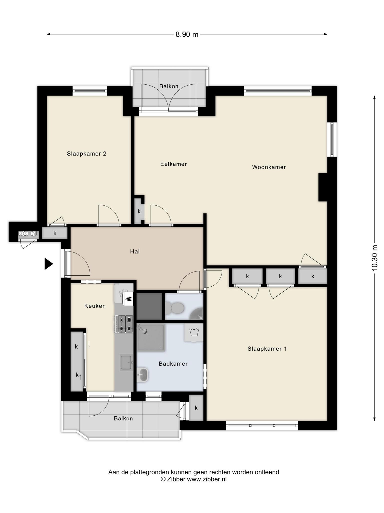 Opvallend aan dit appartement is de vergrote woonkamer, doordat de kleinste slaapkamer bij deze ruimte is getrokken. Hierdoor is de woonkamer lekker ruim met een directe toegang tot één van de balkons. De wanddelen en de deur zijn nog aanwezig voor het eenvoudig realiseren van een 3e slaapkamer.