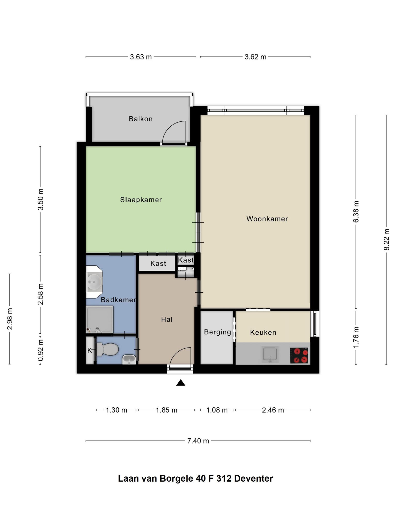Appartement: entree/hal met garderobe, meterkast en toilet met staand closet en fonteintje. Via de hal betreed je de lichte woonkamer, voorzien van buitenzonwering en toegang tot de slaapkamer met ingebouwde een vaste kast met schuifdeuren. Grenzend aan deze slaapkamer is het balkon van prettig formaat en de badkamer. De badkamer is voorzien van een douchecabine, wastafel, mechanische ventilatie, elektrische verwarming en verschaft toegang tot het eerder genoemde separaat toilet. De halfopen keuken MET ZIJRAAM is voorzien van een natuurstenenblad, de benodigde kastruimte, 4-pits inductiekookplaat, recirculatie afzuigkap en een vrijstaande koelkast.