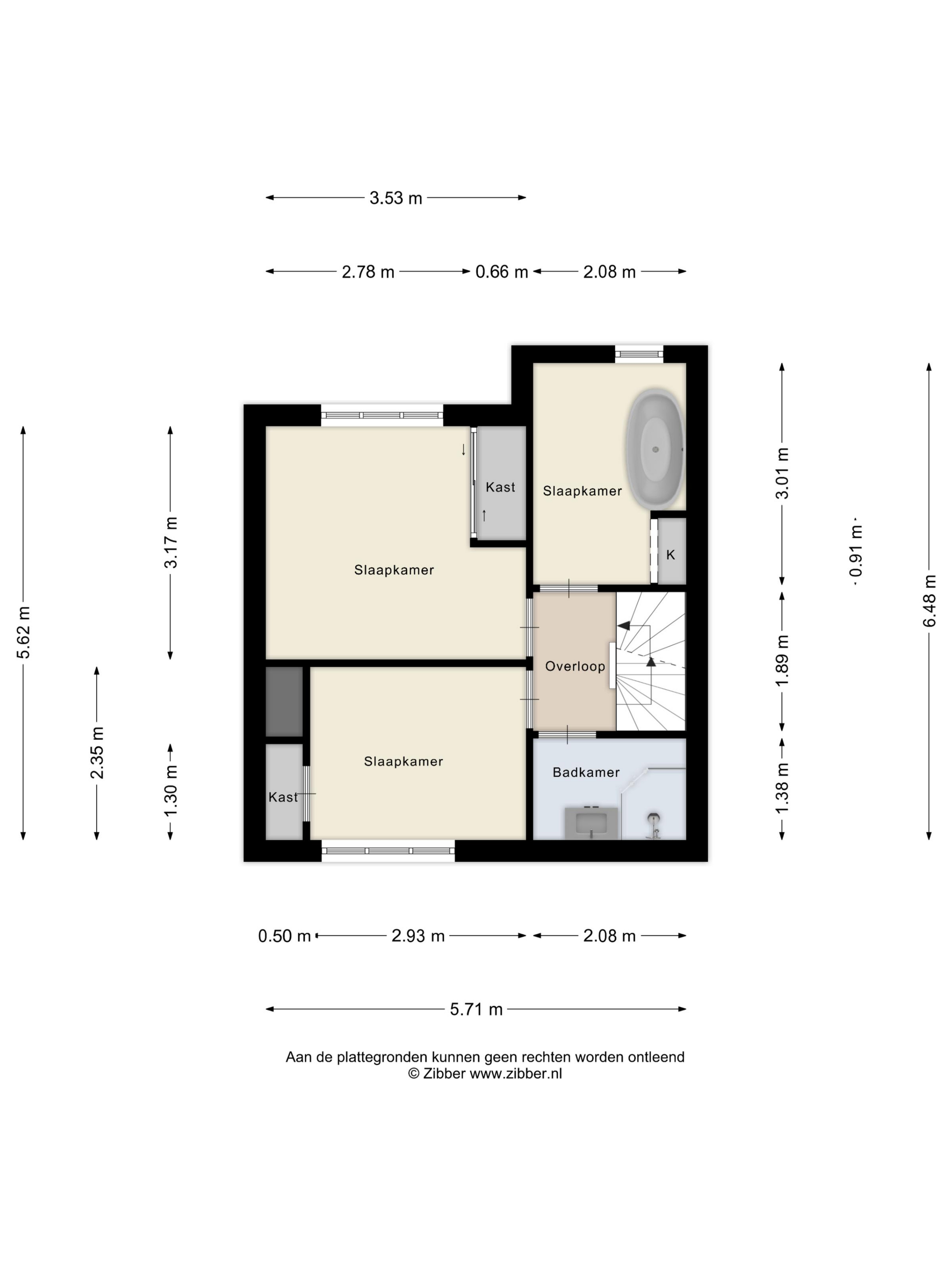 De hoofdslaapkamer aan de achterzijde is ruim (bijna 9 m²). De slaapkamer aan de voorzijde is bijna 7 m² groot. In de tweede slaapkamer aan de achterzijde (6,3 m²) staat momenteel een vrijstaand ligbad; dit kan eenvoudig worden verwijderd, waardoor de ruimte ideaal is als werkplek of vierde slaapkamer.
