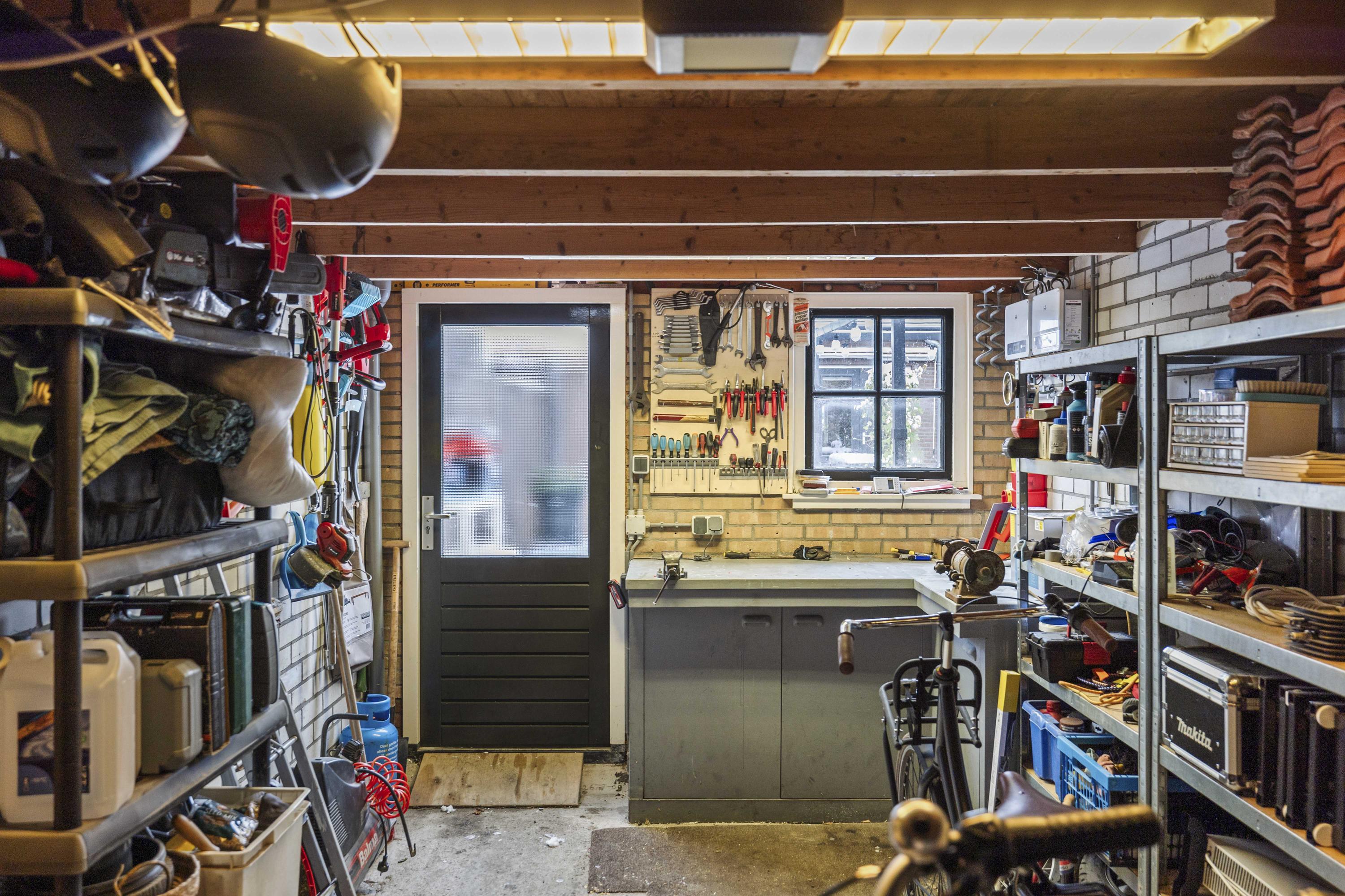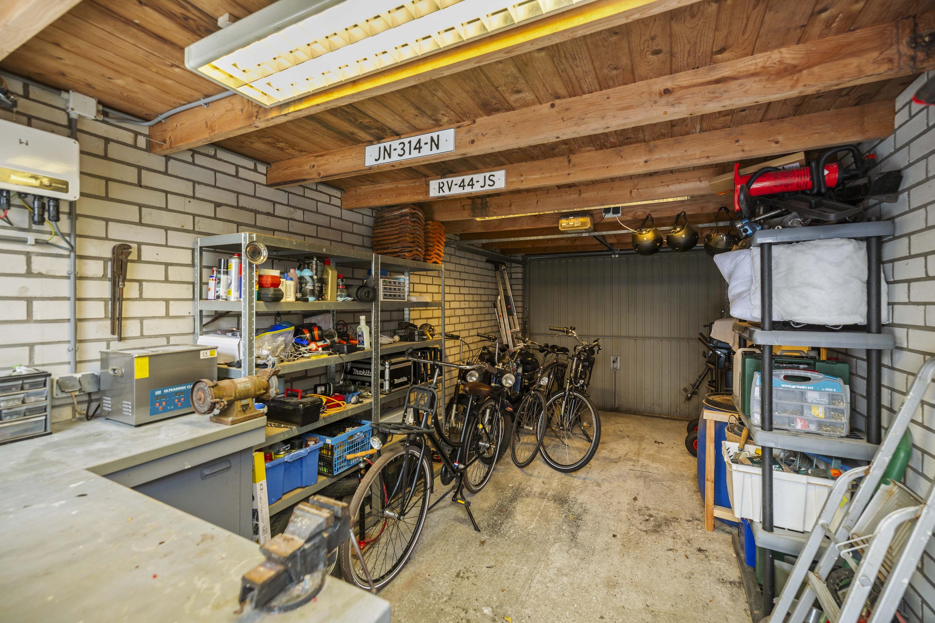 De stenen garage is voorzien van elektra en heeft een op afstand bedienbare kanteldeur. Op de garage liggen 6 extra zonnepanelen die ter overname worden aangeboden.
