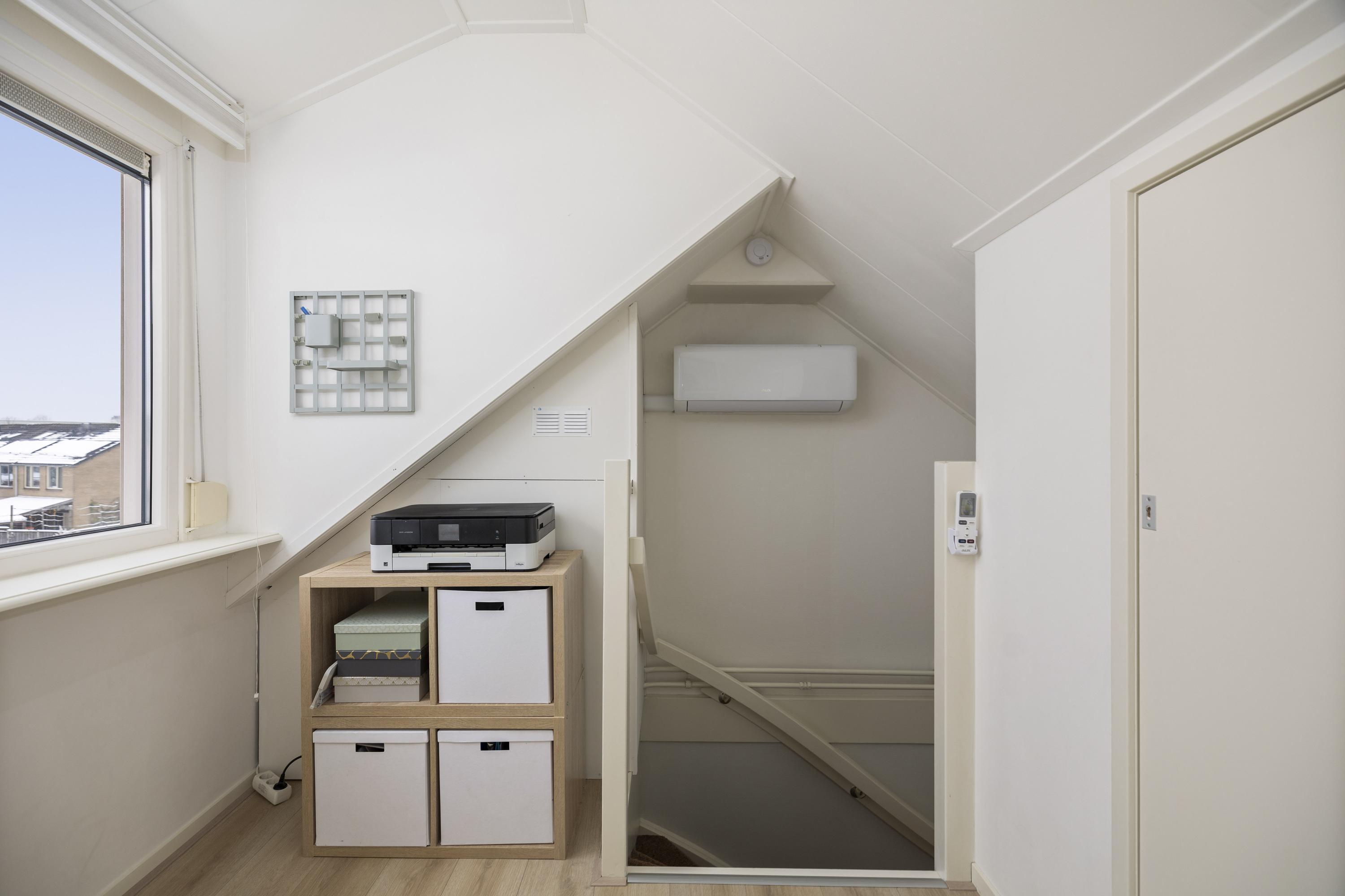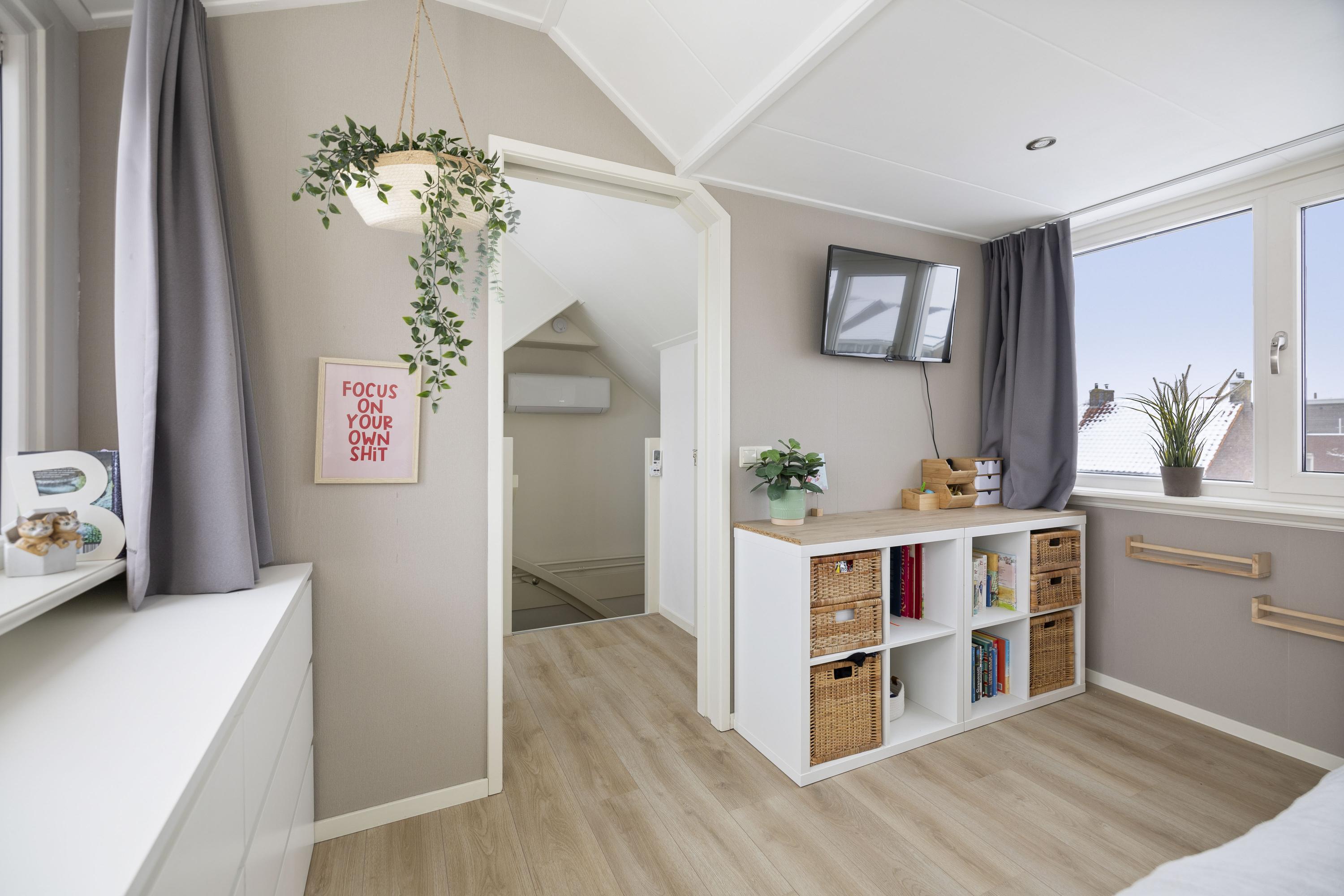 Dankzij de dakopbouw is er een volwaardige, lichte vierde slaapkamer met opnieuw een handige inbouwkast. Naast deze kamer is er veel extra opbergruimte: een berghok en bruikbare ruimte achter de knieschotten.