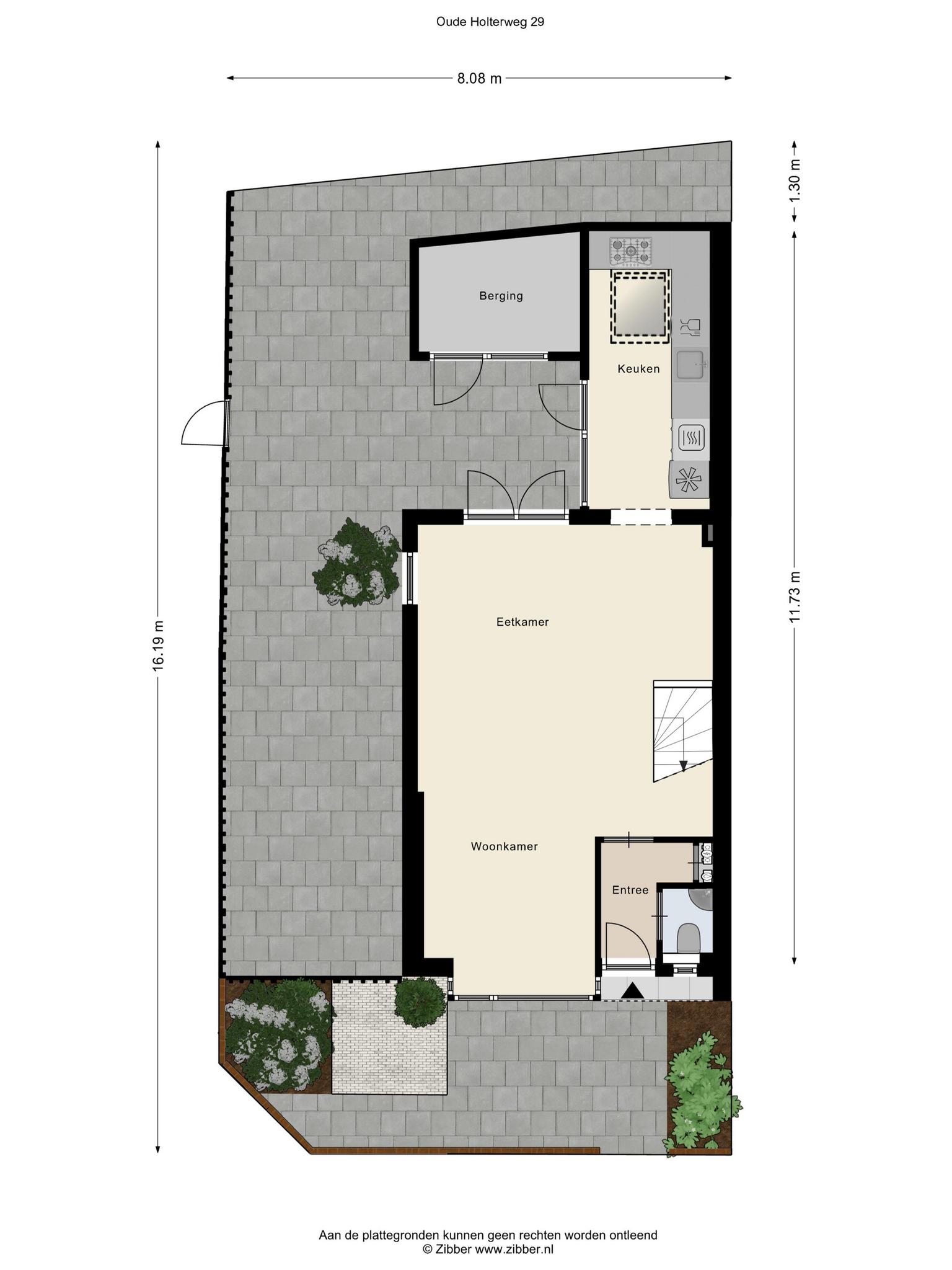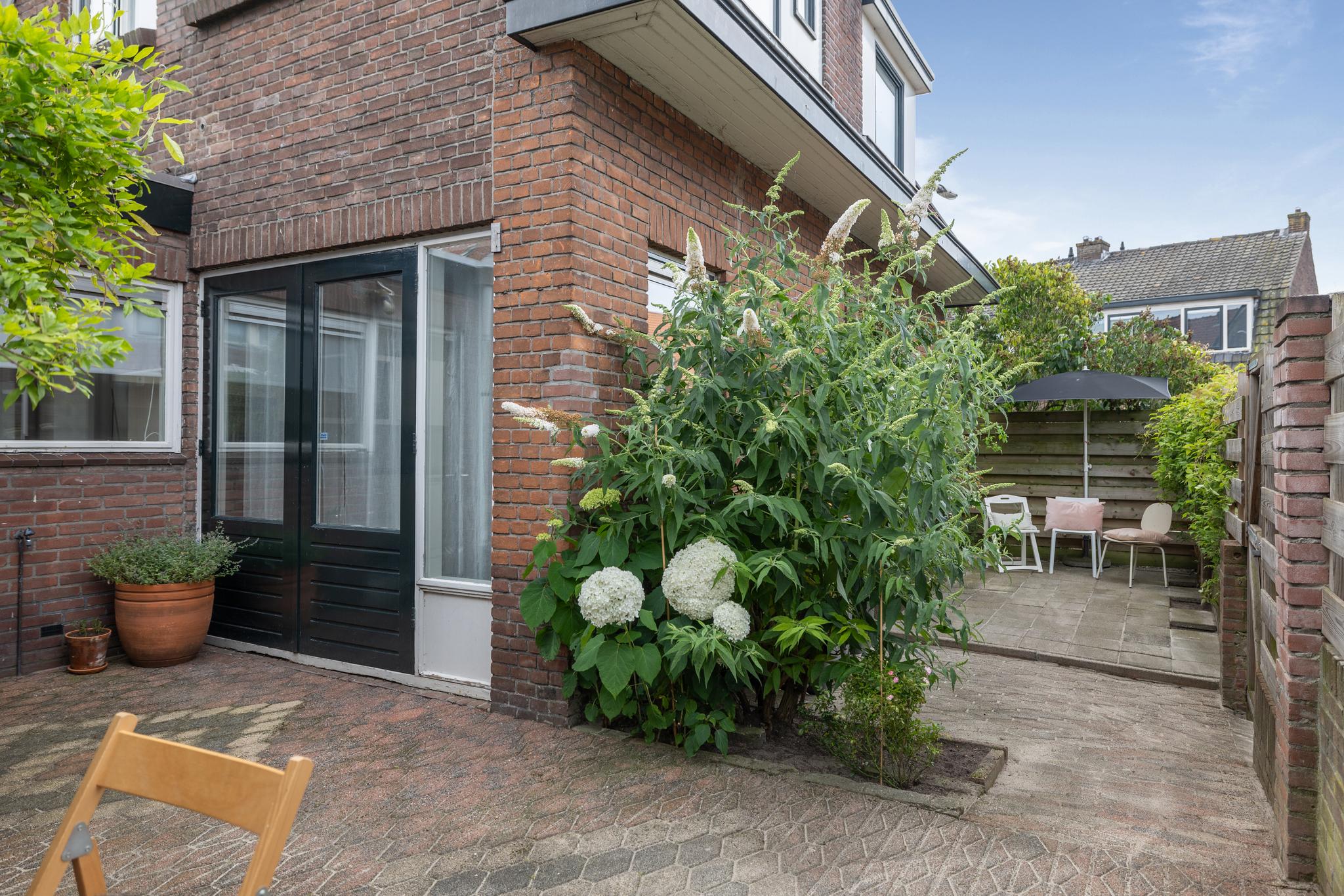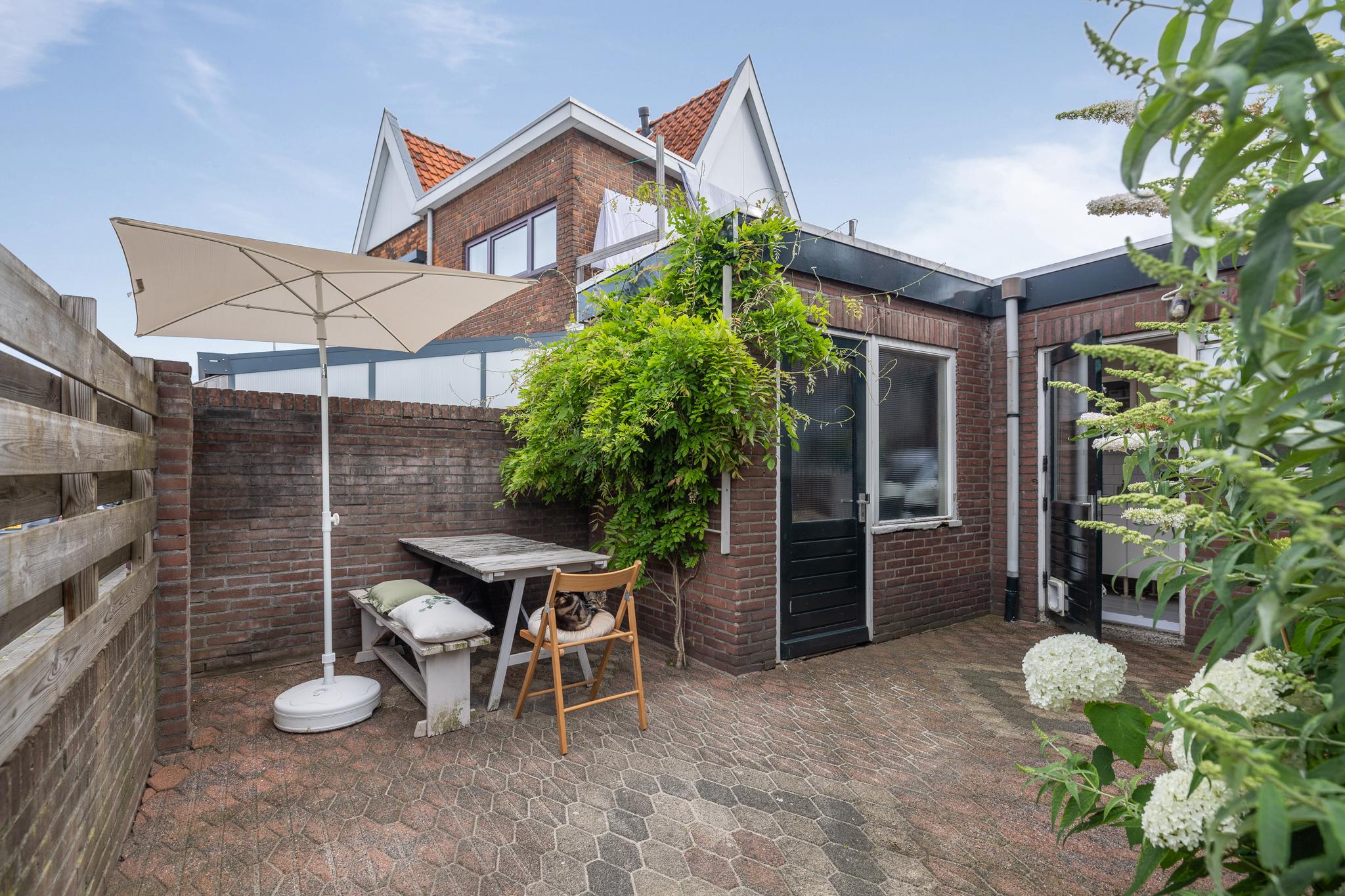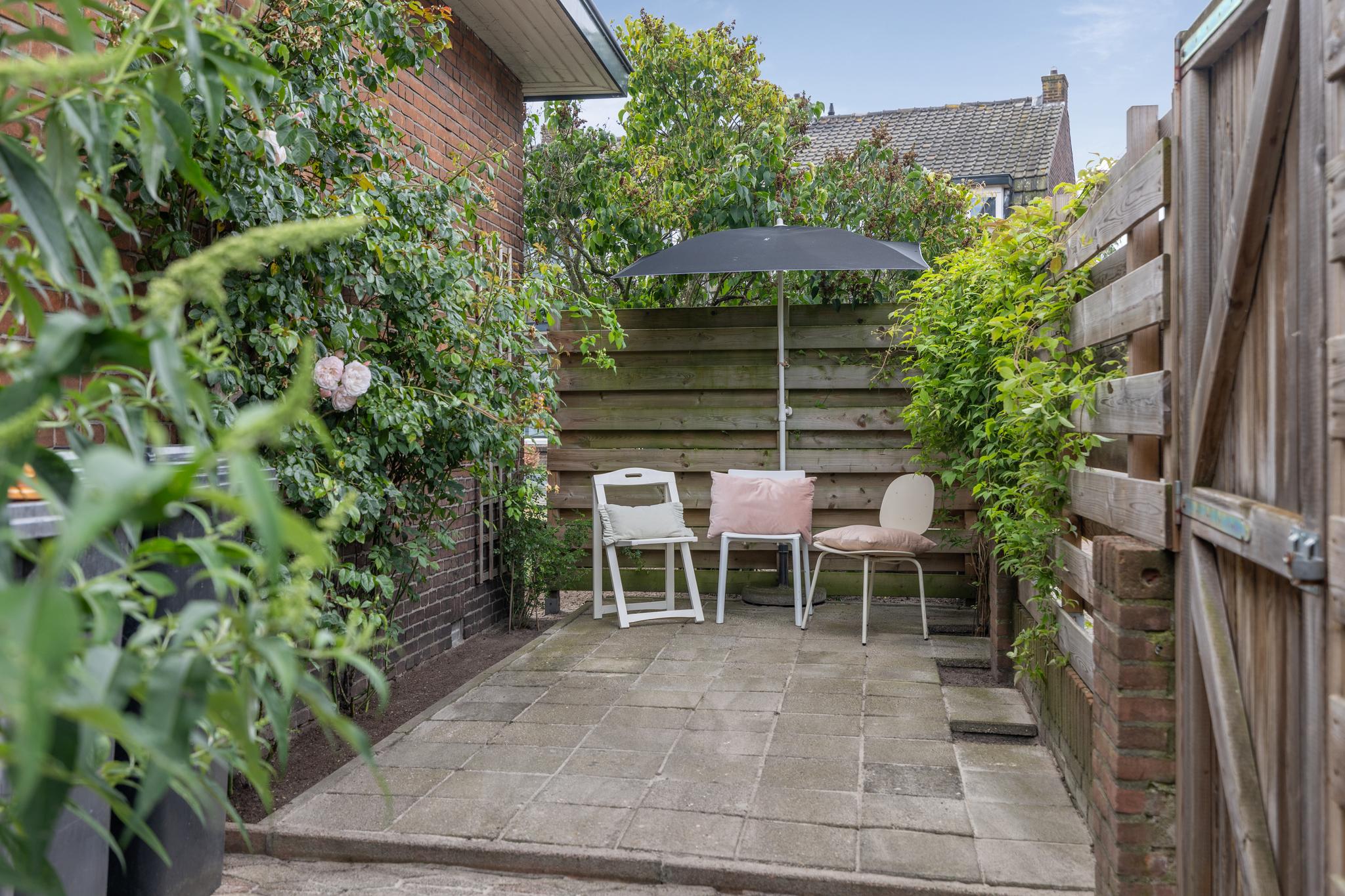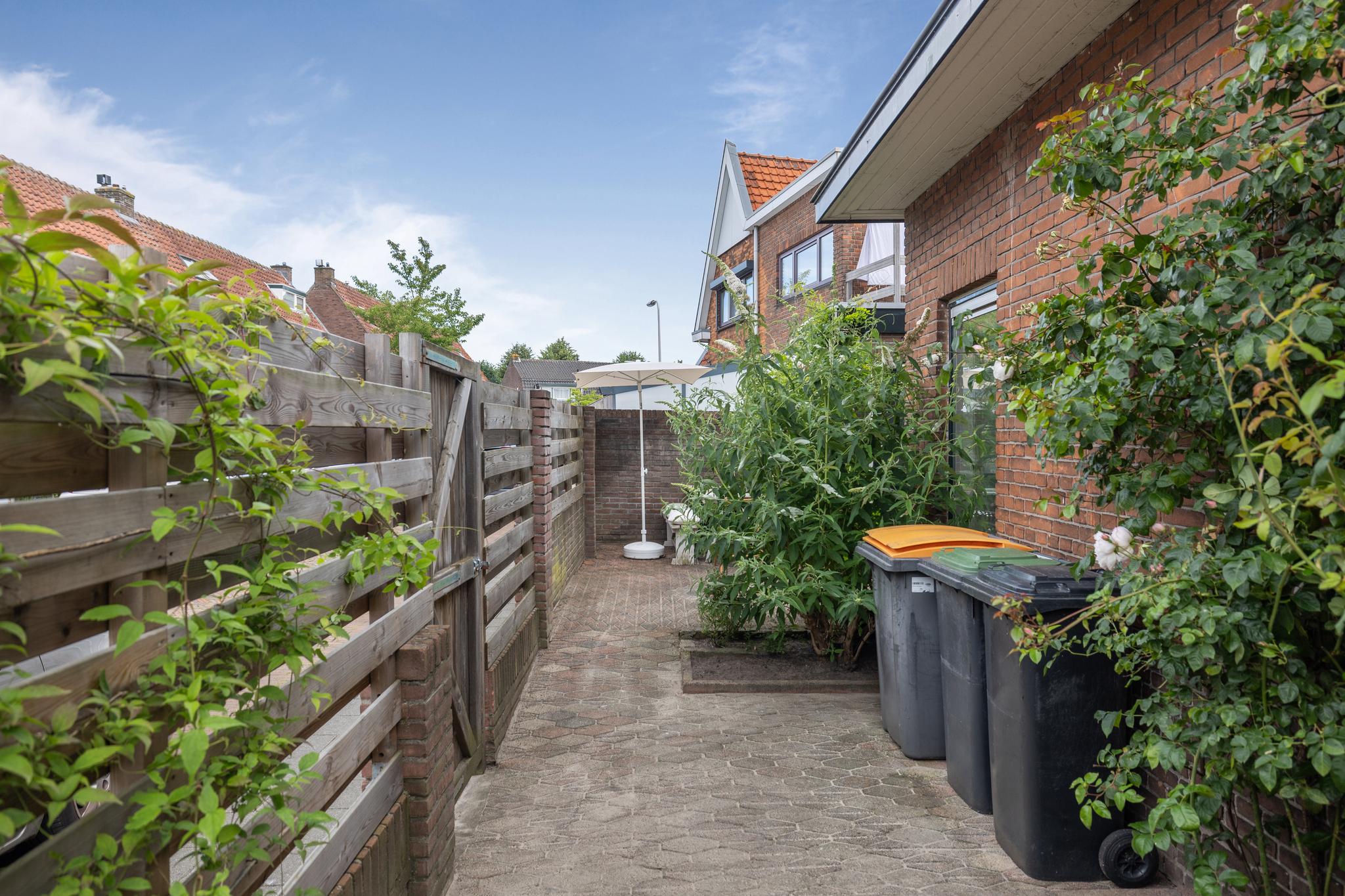 Buiten: achter- en zijtuin omrand door houten schuttingen. De zijtuin is gelegen op het westen. Verder vind je hier een stenen berging.