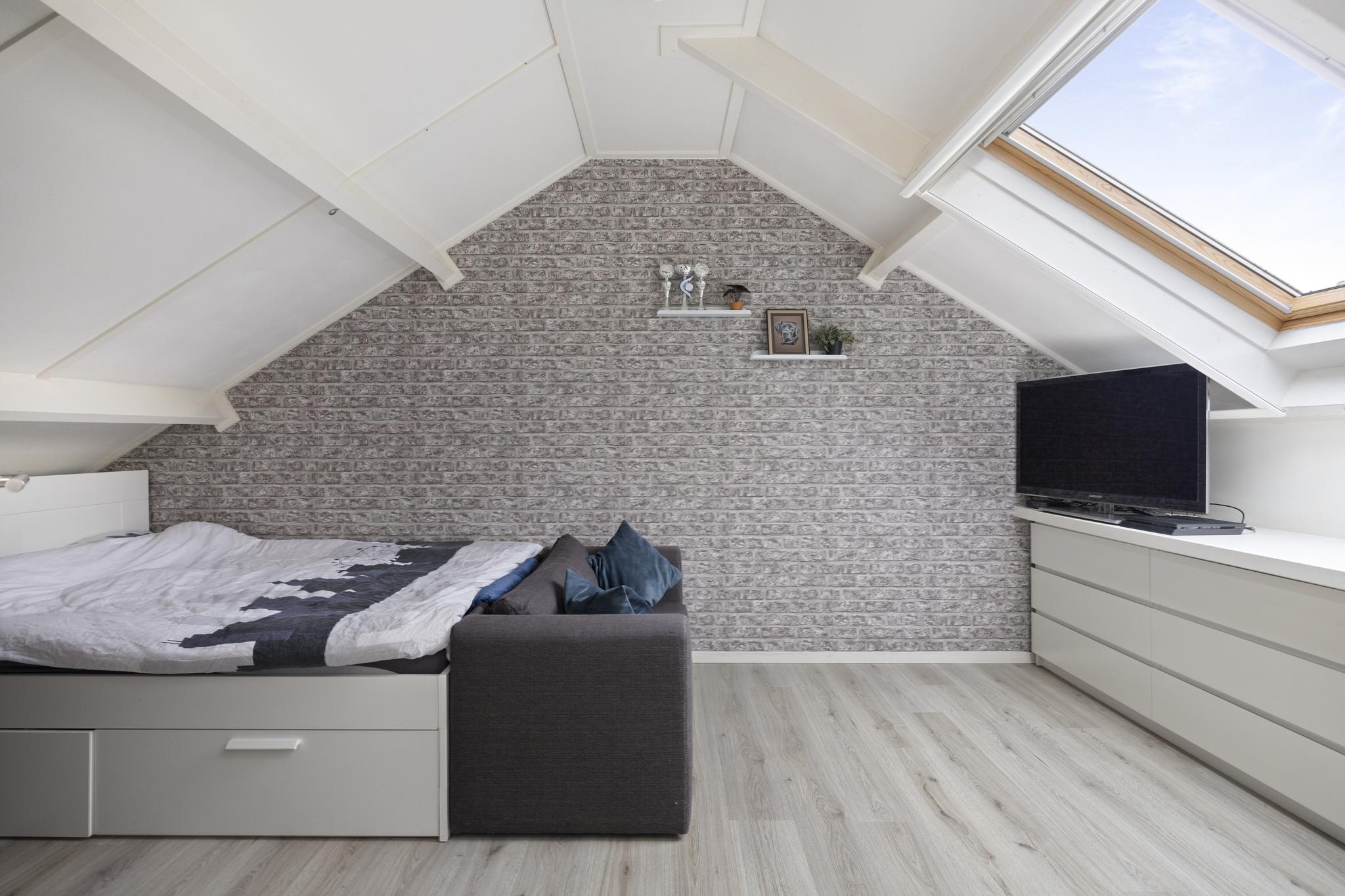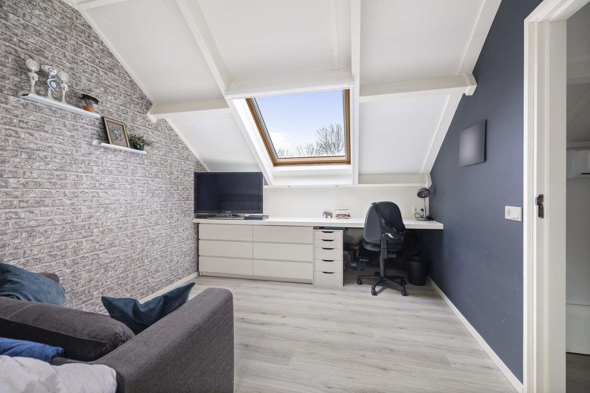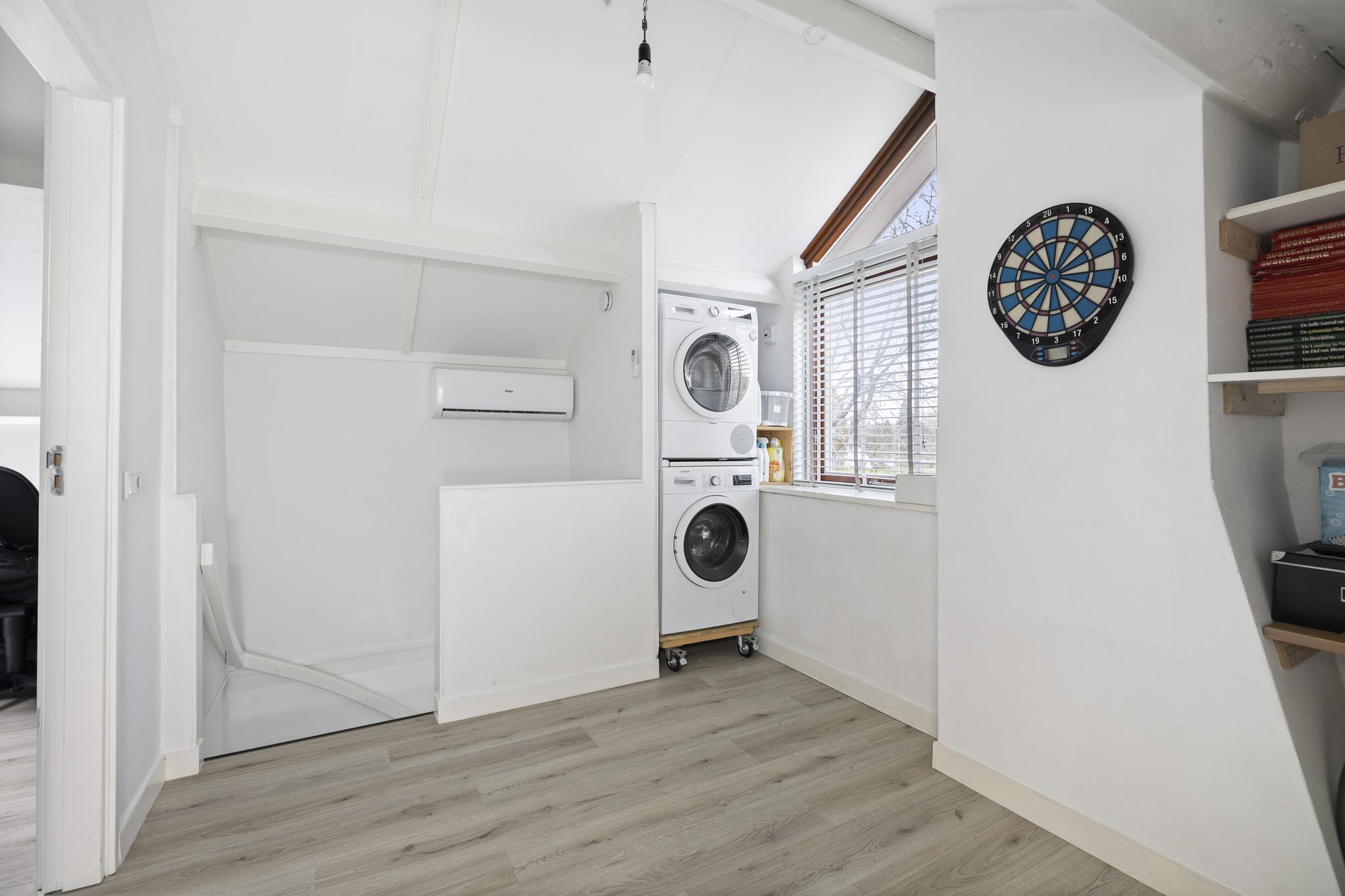 Grote overloop met wasruimte, CV opstelling en veel bergruimte. 4e Grote slaapkamer met dakraam.